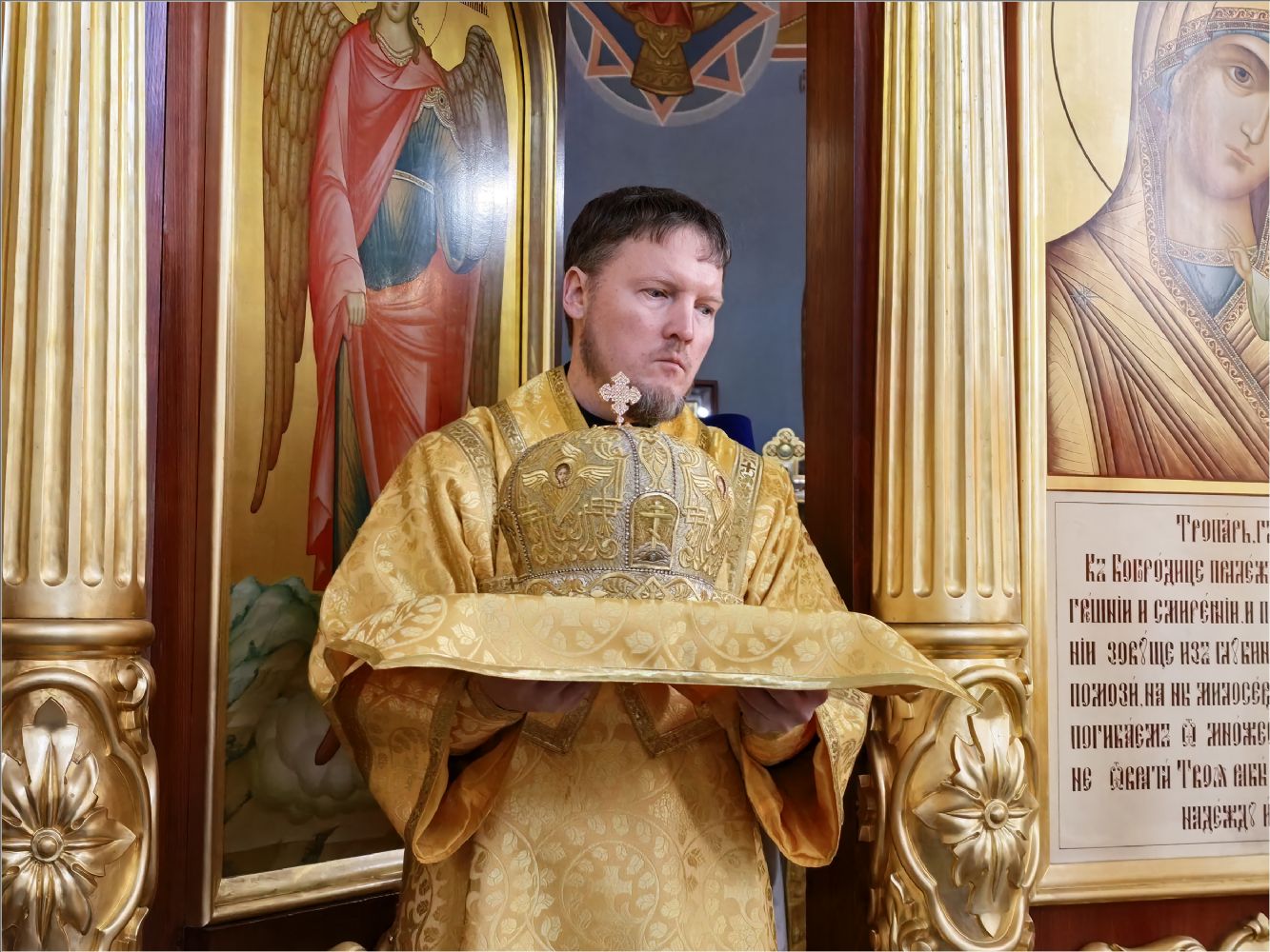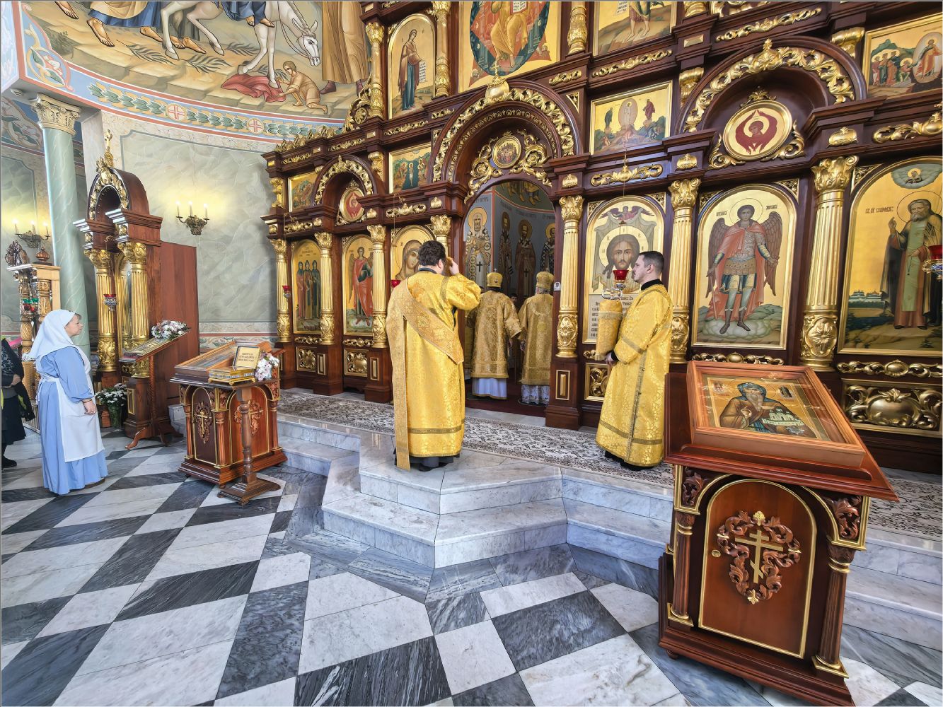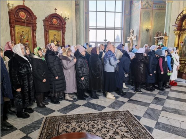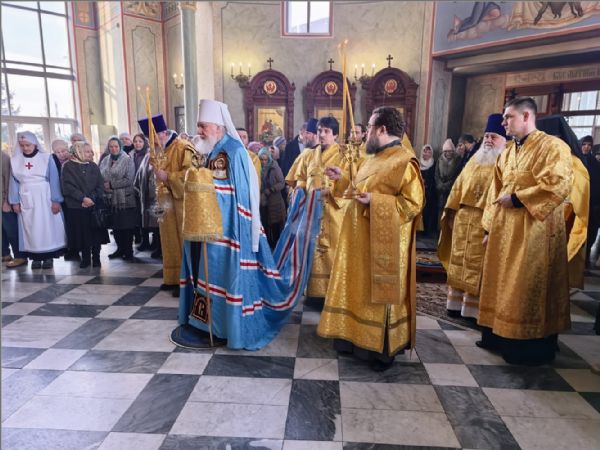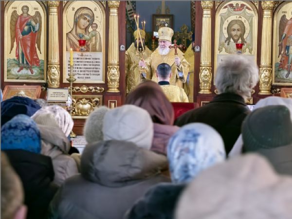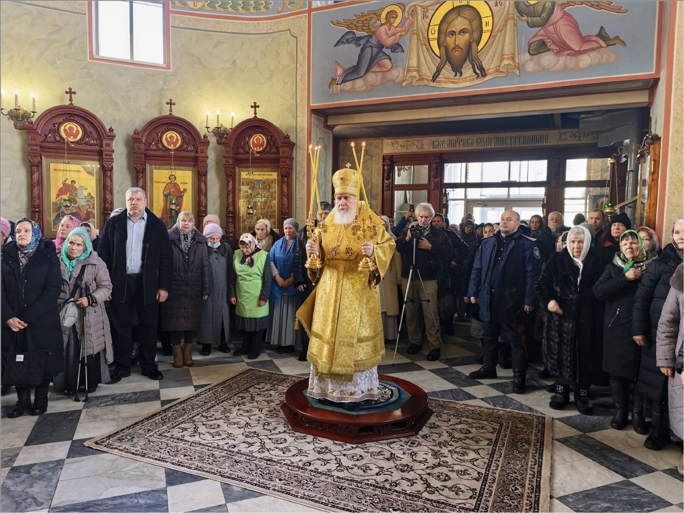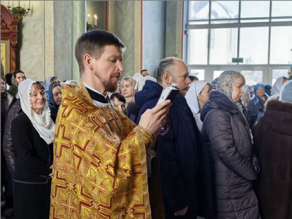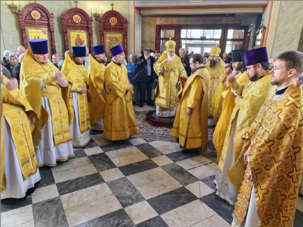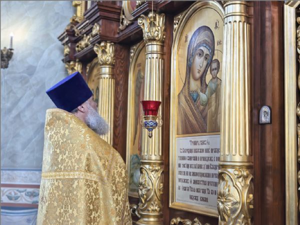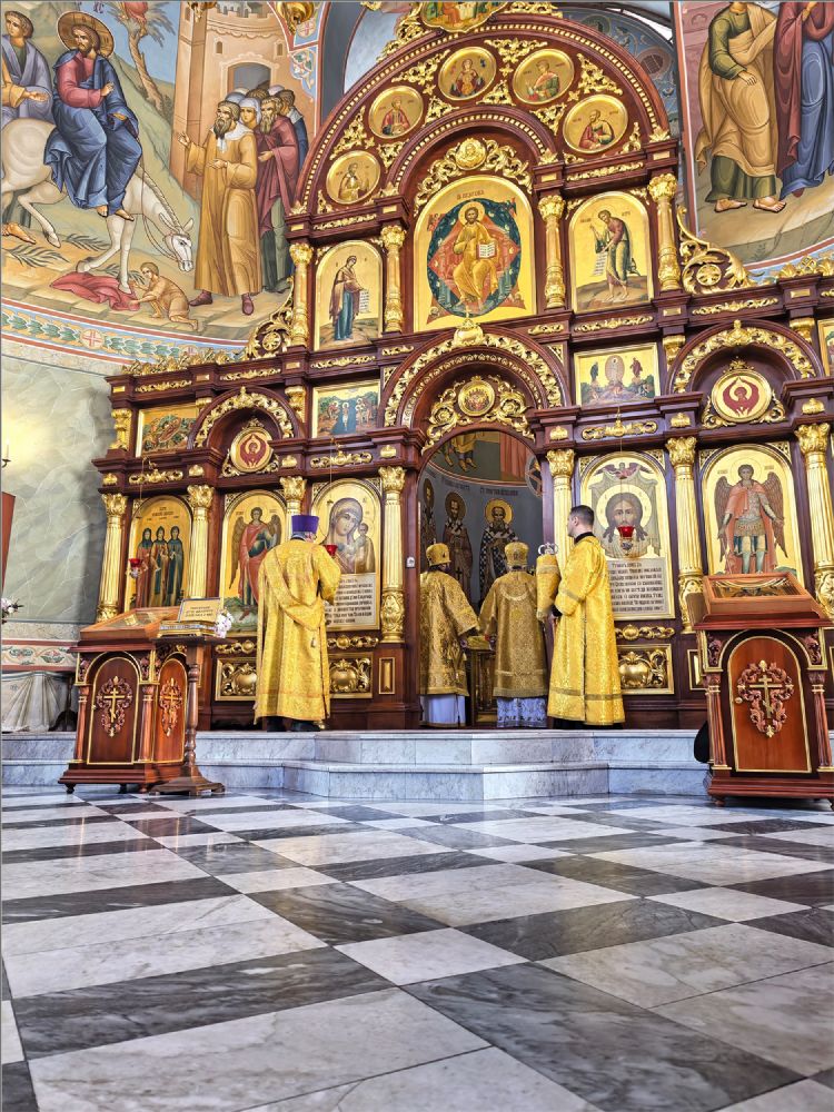 На мирной и сугубой ектениях были вознесены молитвы о Российском воинстве и о мире. Проповедь после запричастного стиха произнёс протоиерей Андрей Дубровин.