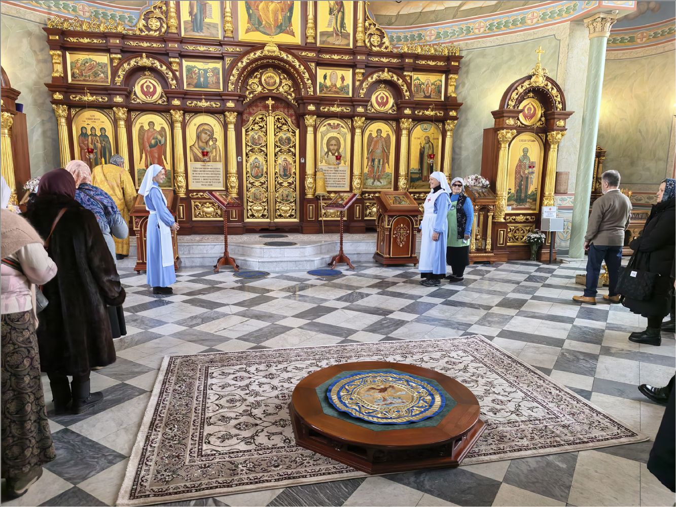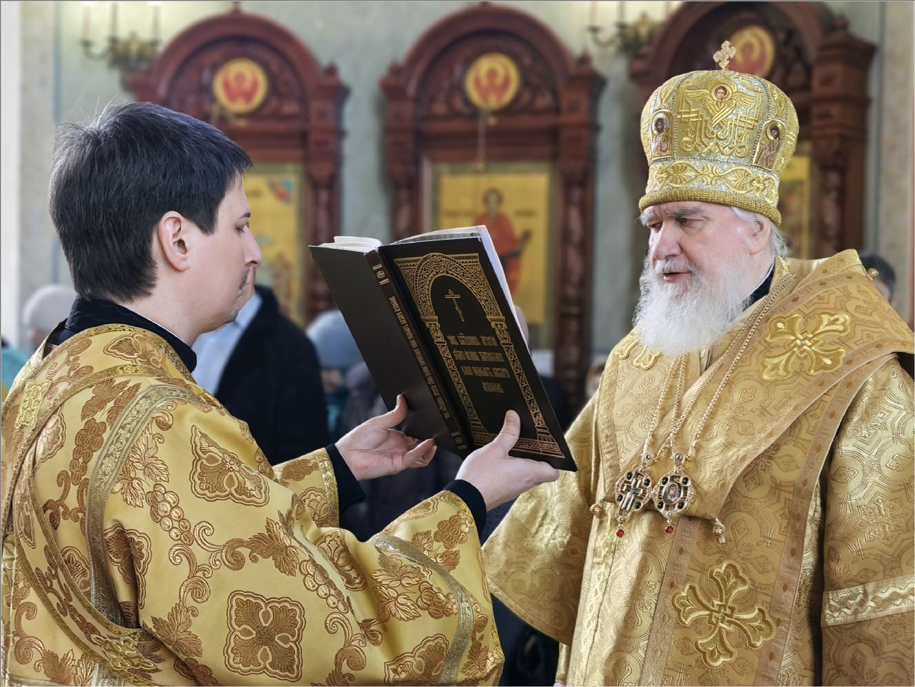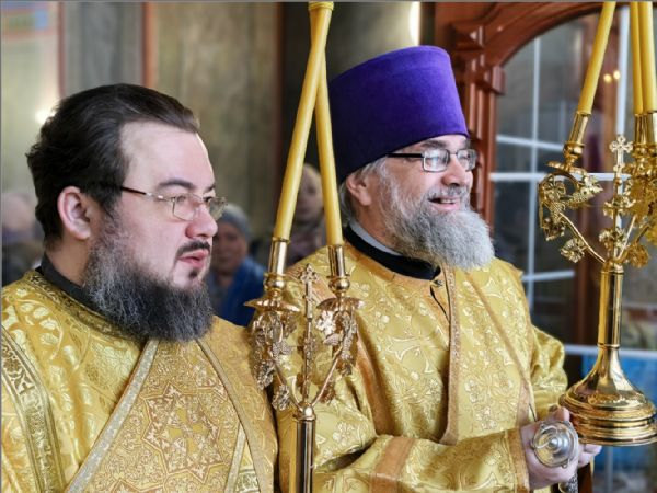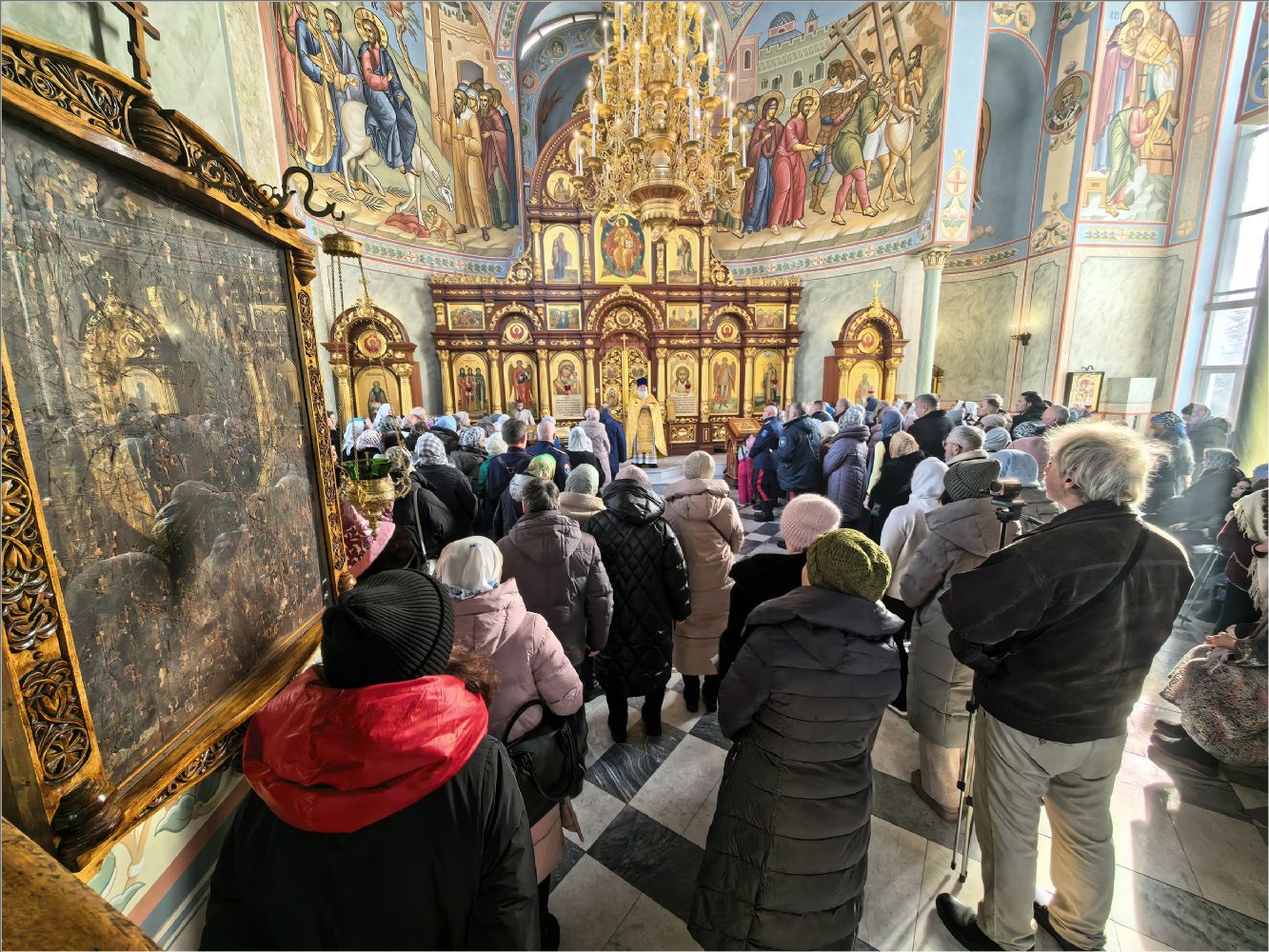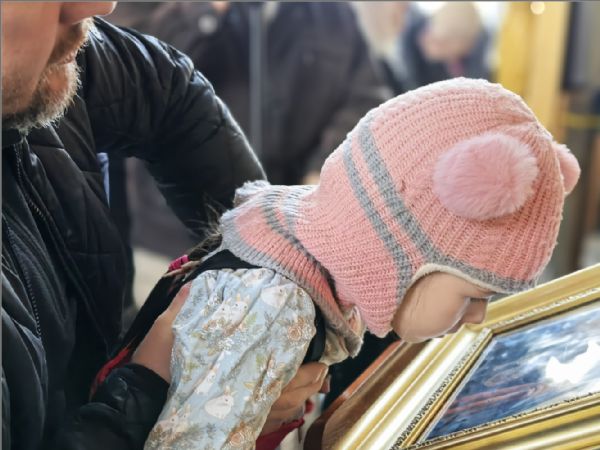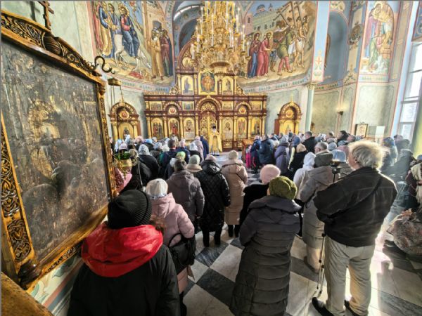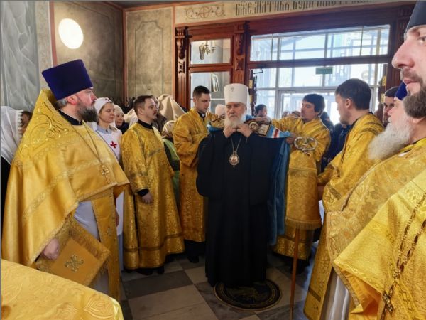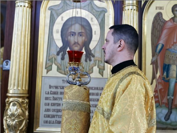 На мирной и сугубой ектениях были вознесены молитвы о Российском воинстве и о мире. Проповедь после запричастного стиха произнёс протоиерей Андрей Дубровин.