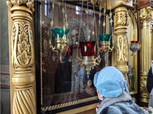 После службы верующим раздали книги митрополита Климента и иконки святителя Филарета (Дроздова).