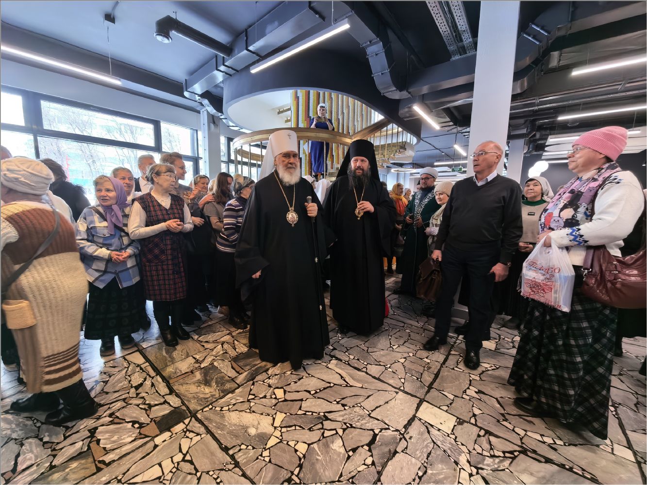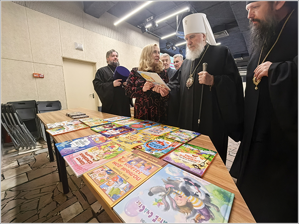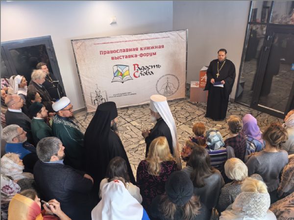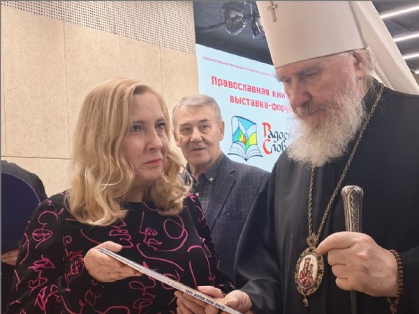 «Радость Слова» — «Слово» пишется здесь с большой буквы — это необычное слово, — отметил владыка. — Но что такое Слово? Это дар Всевышнего человеку, когда он осмысленно выражает свои чувства, свою надежду, свою любовь, свою боль, свою скорбь, свою радость – это дар от Творца. Наше русское слово — великое, оно пронизано Божественным наполнением, потому что принесено было с любовью, и им всегда делились. Россия — великая, многокультурная страна, и каждый народ, более ста народностей, несет свои культурные особенности, но слово всех объединяет. Какие сейчас есть проблемы с русским словом? Во-первых, особенно среди молодежи, русское слово засоряется, и мы должны очистить язык. На русском слове описывались наши победы, создавали свои произведения Достоевский, Пушкин, Чехов, Гоголь, русское слово — это слово нашей детской сказки. Вторая проблема — современные технологии, которые отвлекают человека от книги. Гаджеты становятся учителями, но в них нет красивого русского языка, они засоряют пространство слова. Всегда книга была учителем, книга учила первому слову, несла первую информацию ребенку, передавала нашу культуру, наши чаяния, нашу общую историю, наши трудности и наши победы. Мы должны беспокоиться о том, чтобы молодежь научилась, усвоила тот русский язык, на котором созданы наши великие произведения — это наше богатство. Выставка «Радость Слова» предназначена для того, чтобы приблизить книгу к человеку и к семье».