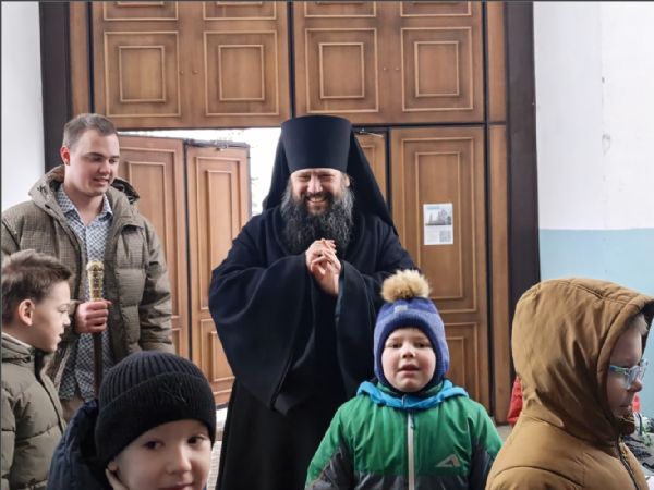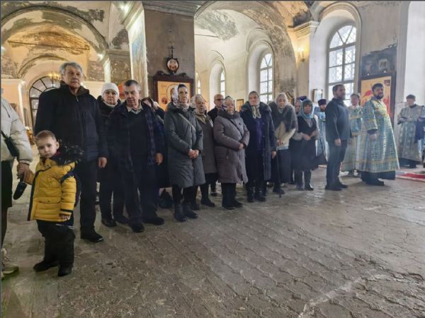 На мирной и сугубой ектениях были вознесены молитвы о Российском воинстве и о мире. По запричастном стихе иерей Роман Лепихин зачитал обращение Святейшего Патриарха Московского и всея Руси Кирилла по случаю празднования Дня православной молодёжи. После отпуста Литургии епископ Гавриил по традиции освятил свечи. Было совершено славление празднику Сретения.