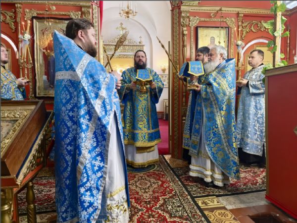 Его Преосвященству сослужили благочинный Закамского округа протоиерей Андрей Дубровин, клирики Спасского собора иерей Михаил Климов и иерей Роман Лепихин, клирик Свято‑Вознесенского кафедрального собора иерей Сергий Иноземцев. Диаконский чин возглавил протодиакон Дмитрий Половников. Песнопения исполнили приходской хор под управлением Натальи Кучерявенко.
