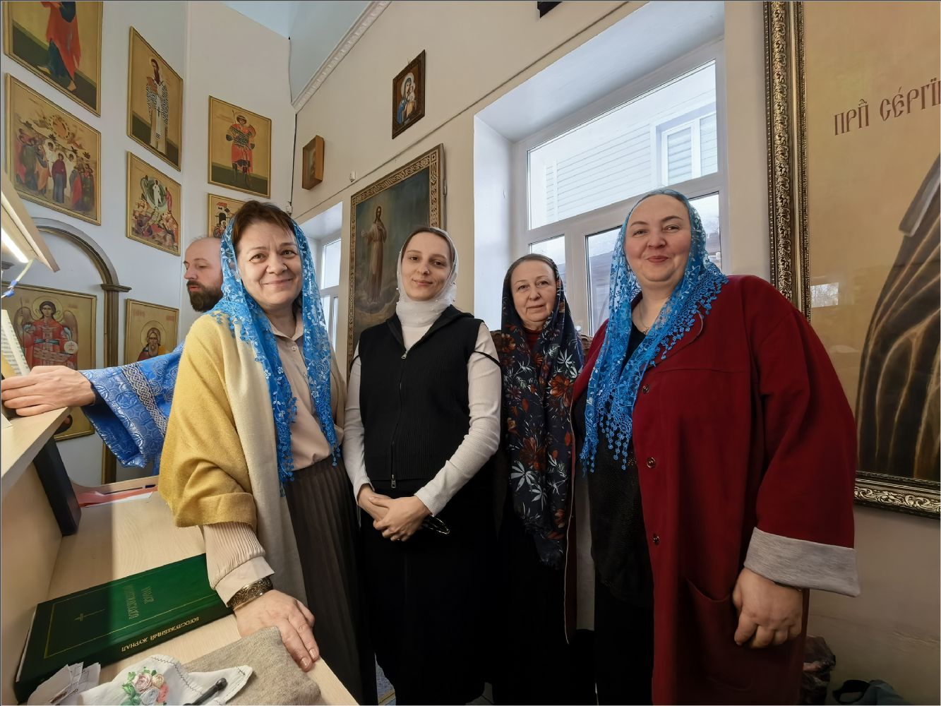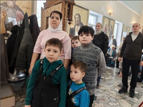 На мирной и сугубой ектениях были вознесены молитвы о Российском воинстве и о мире. По запричастном стихе проповедь произнёс протоиерей Валерий Каранаев.