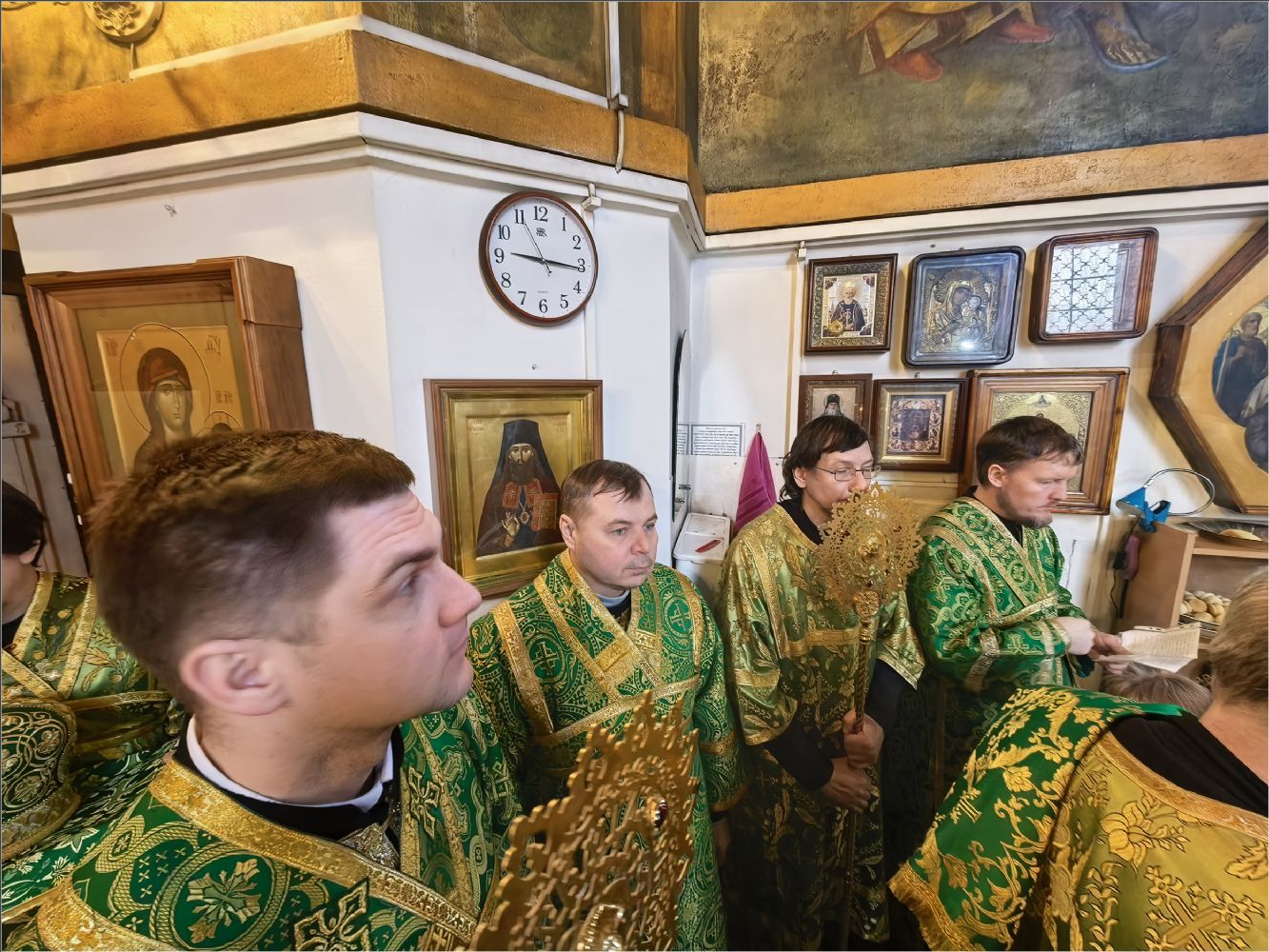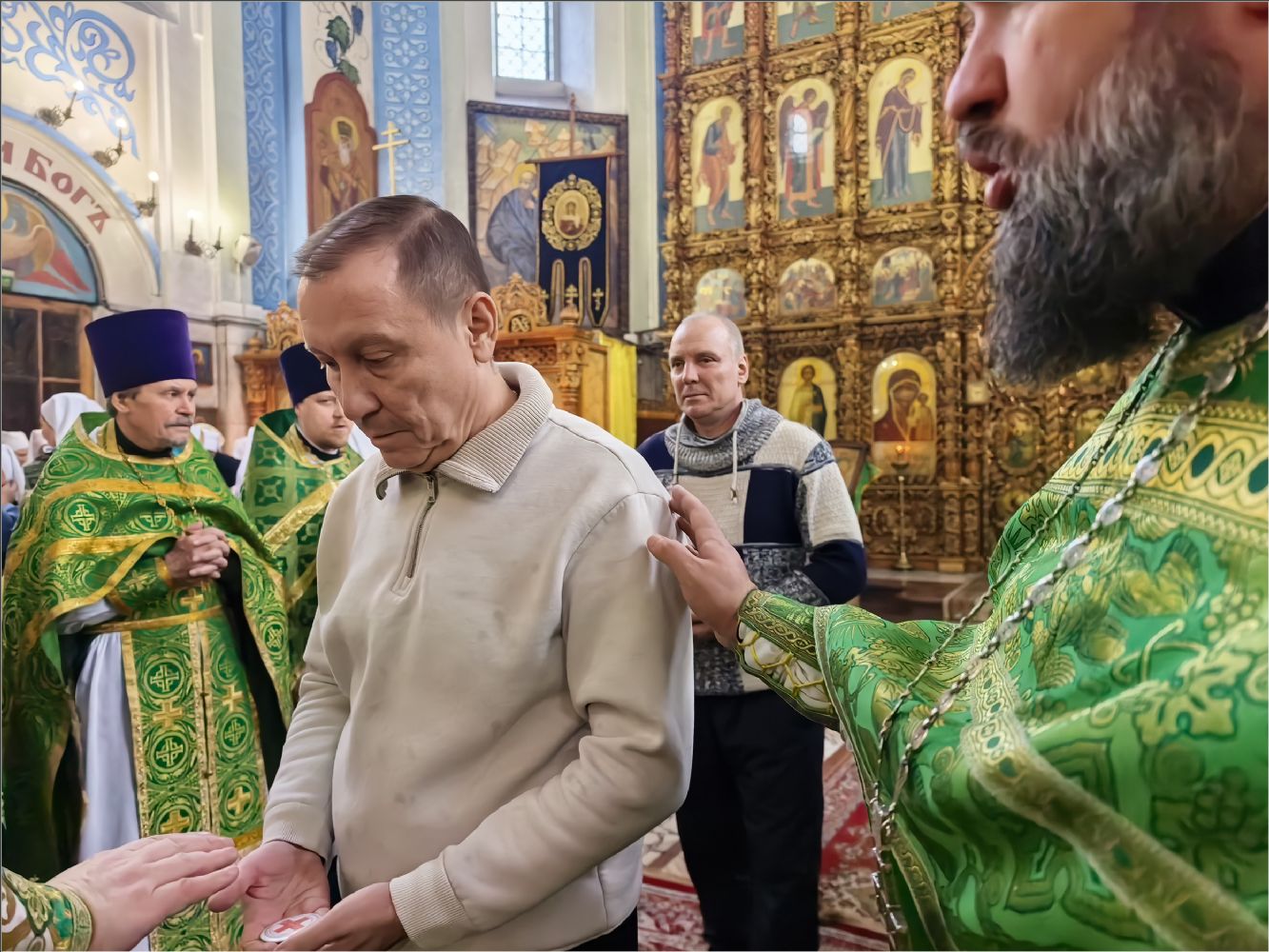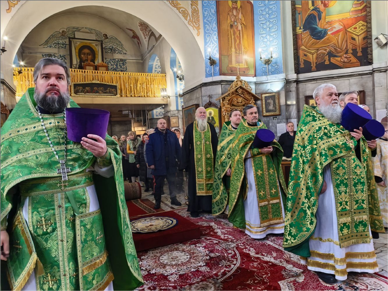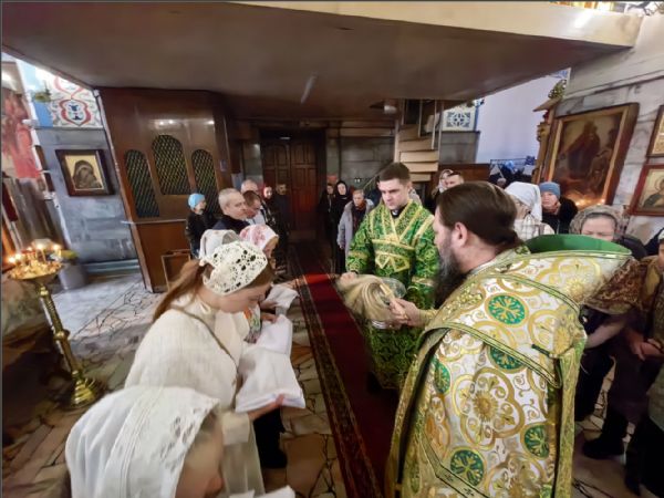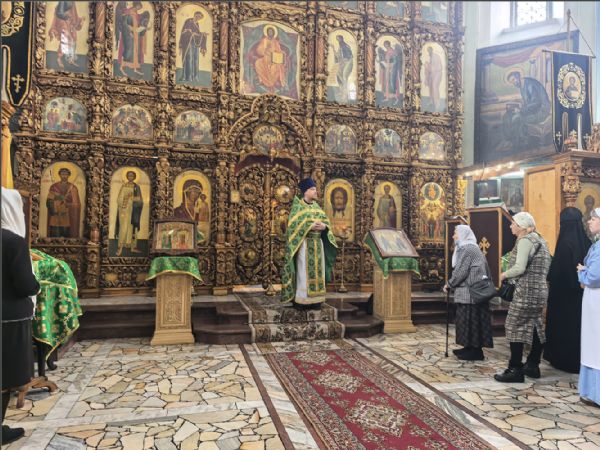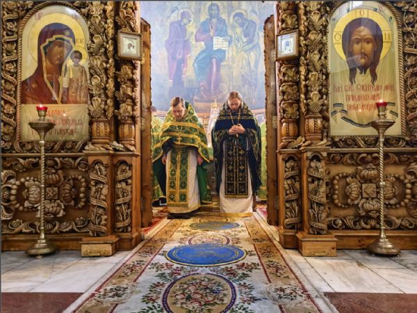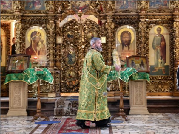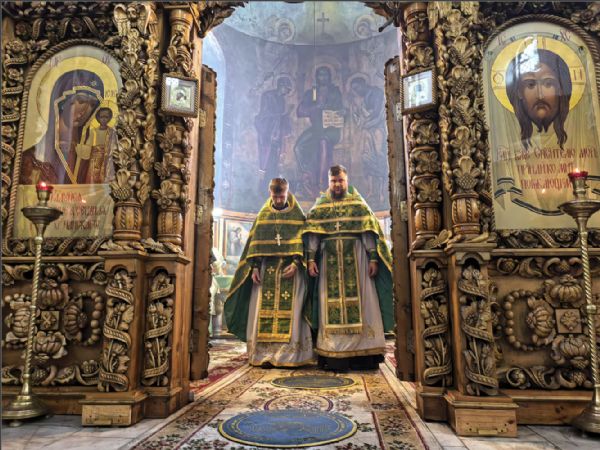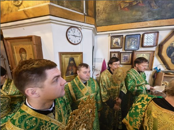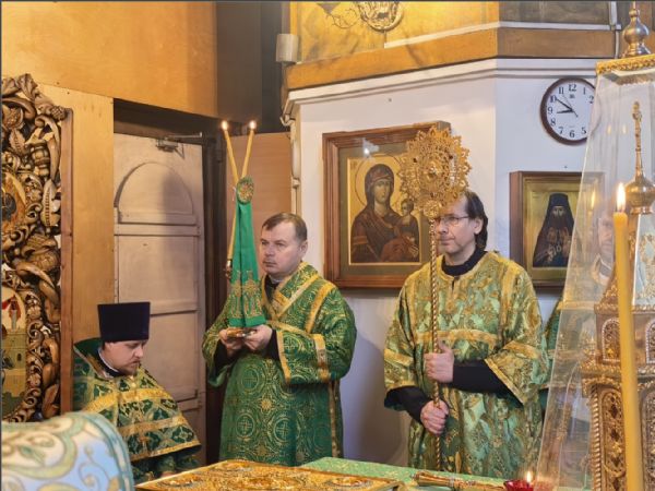 На мирной и сугубой ектениях были вознесены молитвы о Российском воинстве и о мире. По запричастном стихе проповедь произнёс иерей Дионисий Васильев.