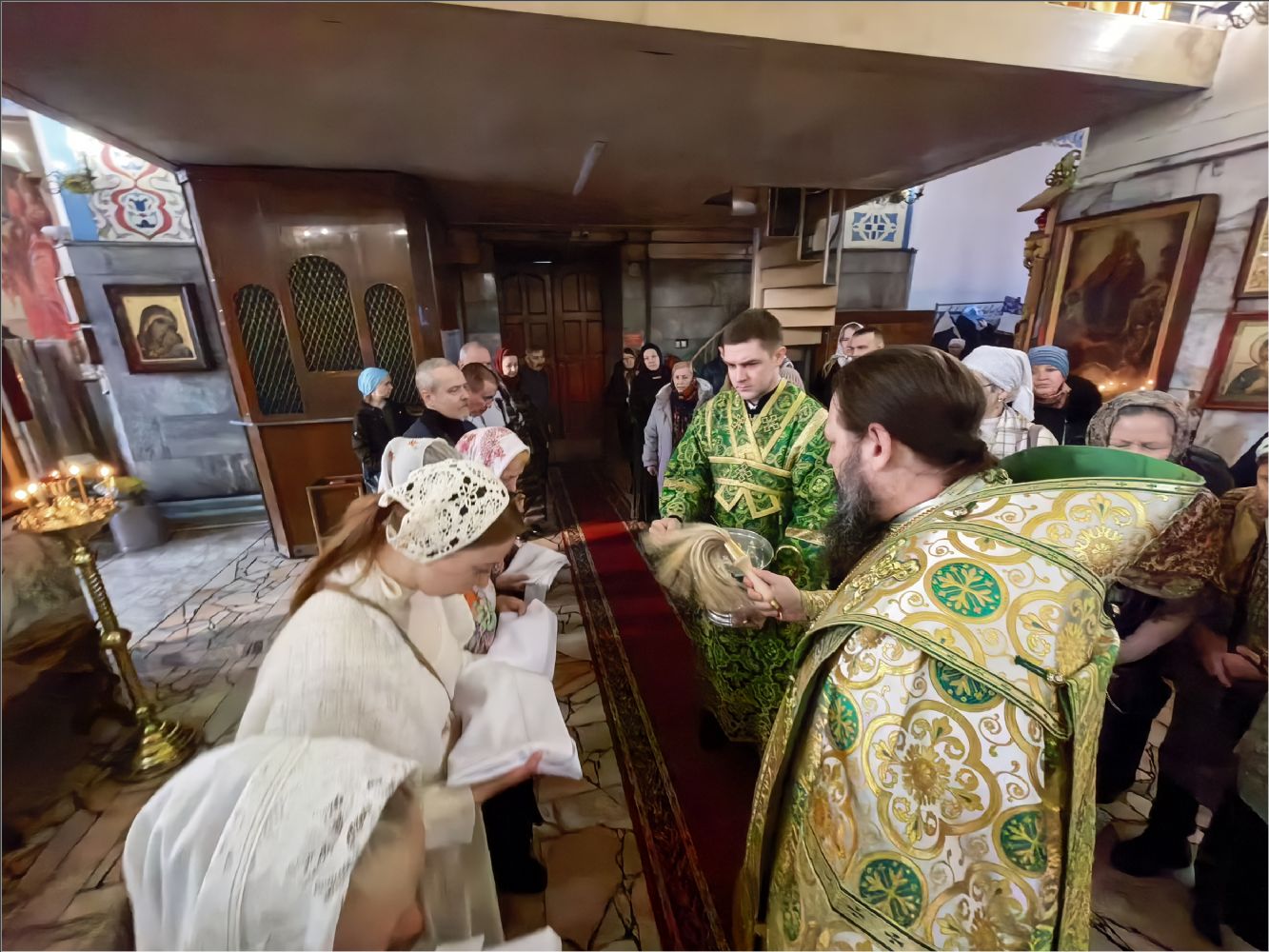 Святые Отцы различали разные виды мученичества. Есть красное мученичество, когда человек проливал свою кровь за Господа. Есть мученичество зеленое, когда подвижник так горячо борется с дьяволом, с укоренившемся в нем самом грехом, что тоже становится мучеником. Были такие зеленые мученики — святые монахи. В память о них мы сегодня служим в зеленых одеждах. Есть белое мученичество. Оно по-разному понималось. Святой Киприан Карфагенский, великий мученик, говорил, что белое мученичество — это подвиг милосердия. Это те труженики, которые за ближнего входят в его ад, чтобы этот ад стал раем. Идти в больницу, в темницу, к одинокому, покинутому, отчаявшемуся человеку — это тоже мученический подвиг. Это путь смирения и покаяния. Многие вас не поймут, кто-то будет смеяться, осуждать, ревновать. Но Господь обязательно будет вас утешать, вам помогать и даст вам вечную жизнь в царстве Своем».