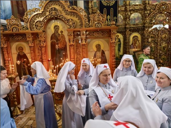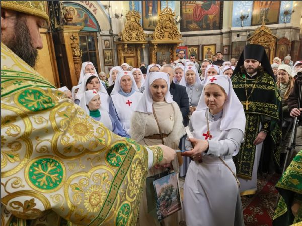 «Сегодня особый день, подготовительный к Великому посту — Собор всех преподобных отцов, в подвиге просиявших. Так промыслительно совпало, что мы сегодня посвящаем на служение наших сестер милосердия. Молитва, которая читается во время посвящения, напоминает монашеский постриг, когда мы просим, чтобы Господь принял нового монаха, стал для него радостью, утешением, Сам с ним по жизни шел. Такая же молитва читалась для сестер. Ваш подвиг любви чем-то похож на монашеский, поэтому и Дары Святого Духа тоже сходны.