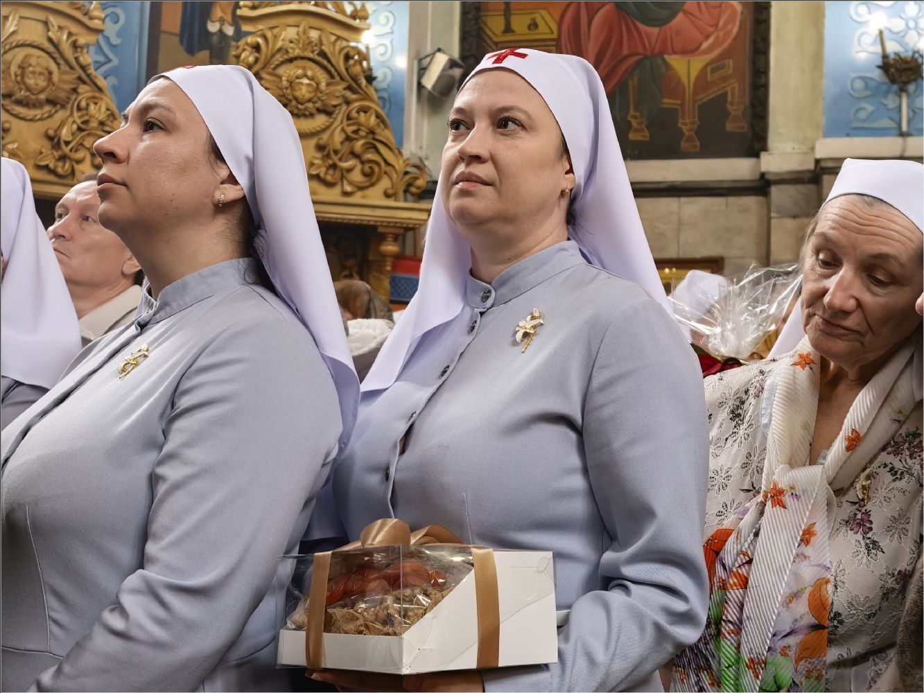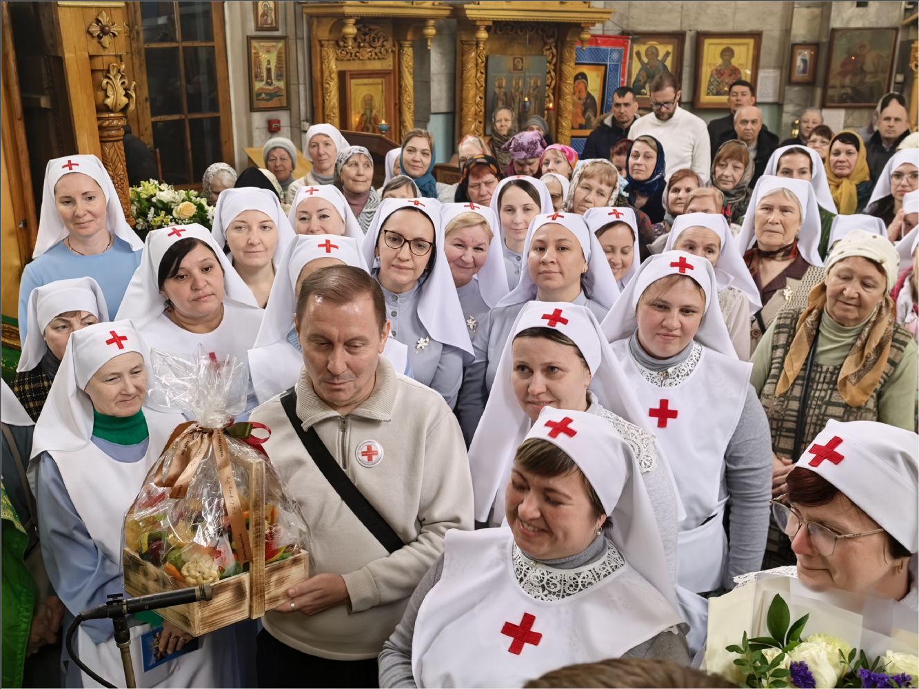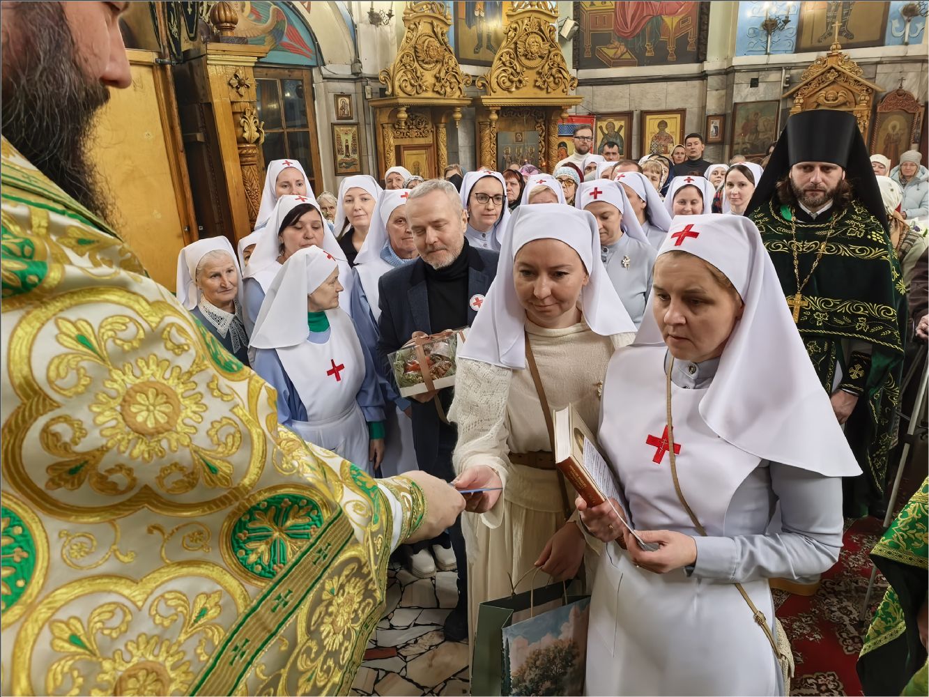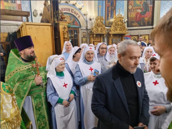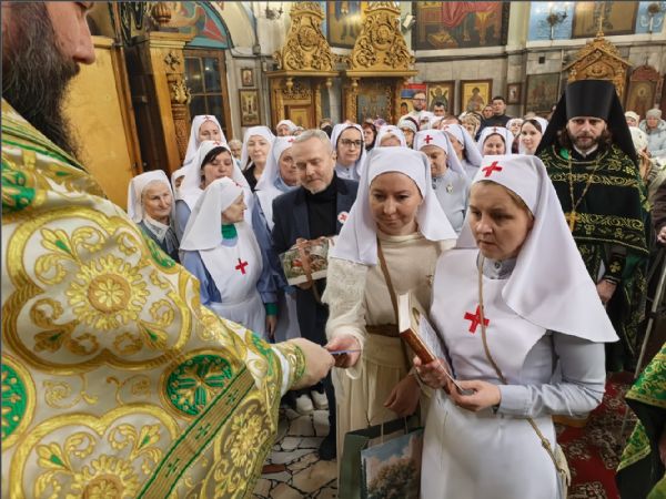 Владыка подарил всем сестрам, кандидатам в сестры милосердия и братьям милосердия акафист святой блаженной Матроне Московской. Представители сестричеств в свою очередь поблагодарили епископа Гавриила:
