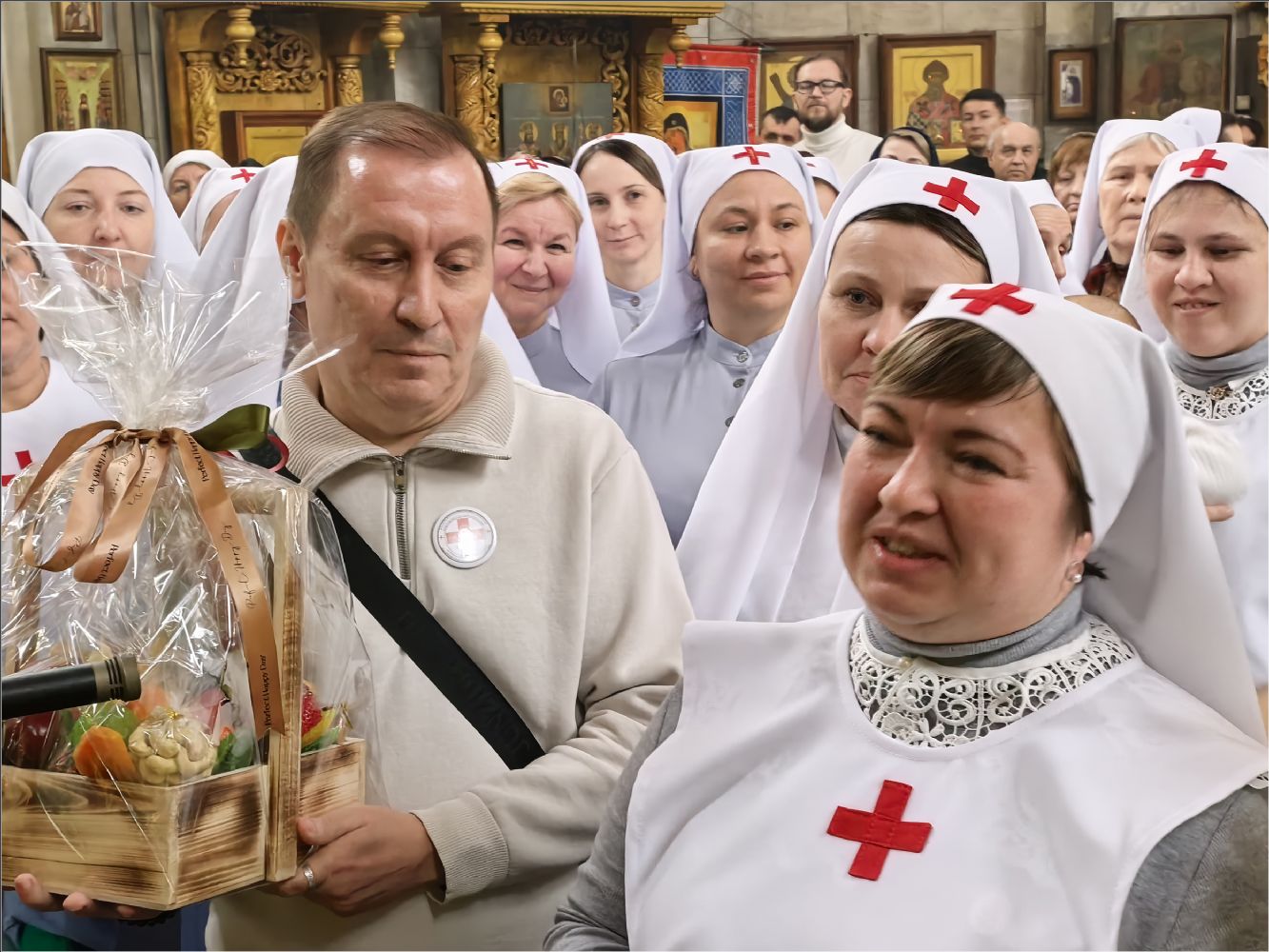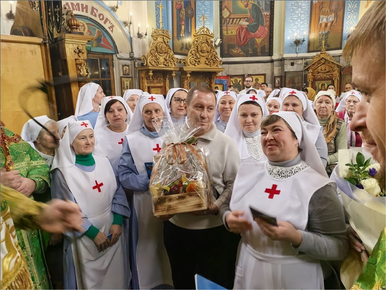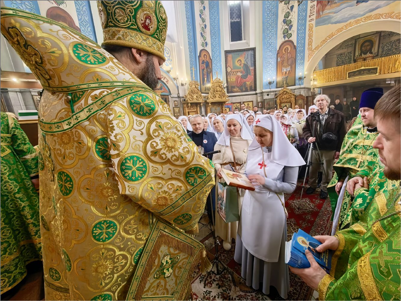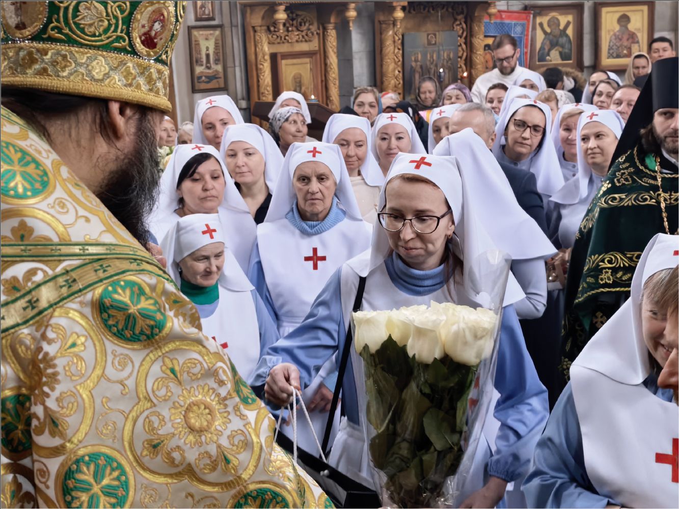 Владыка подарил всем сестрам, кандидатам в сестры милосердия и братьям милосердия акафист святой блаженной Матроне Московской. Представители сестричеств в свою очередь поблагодарили епископа Гавриила: