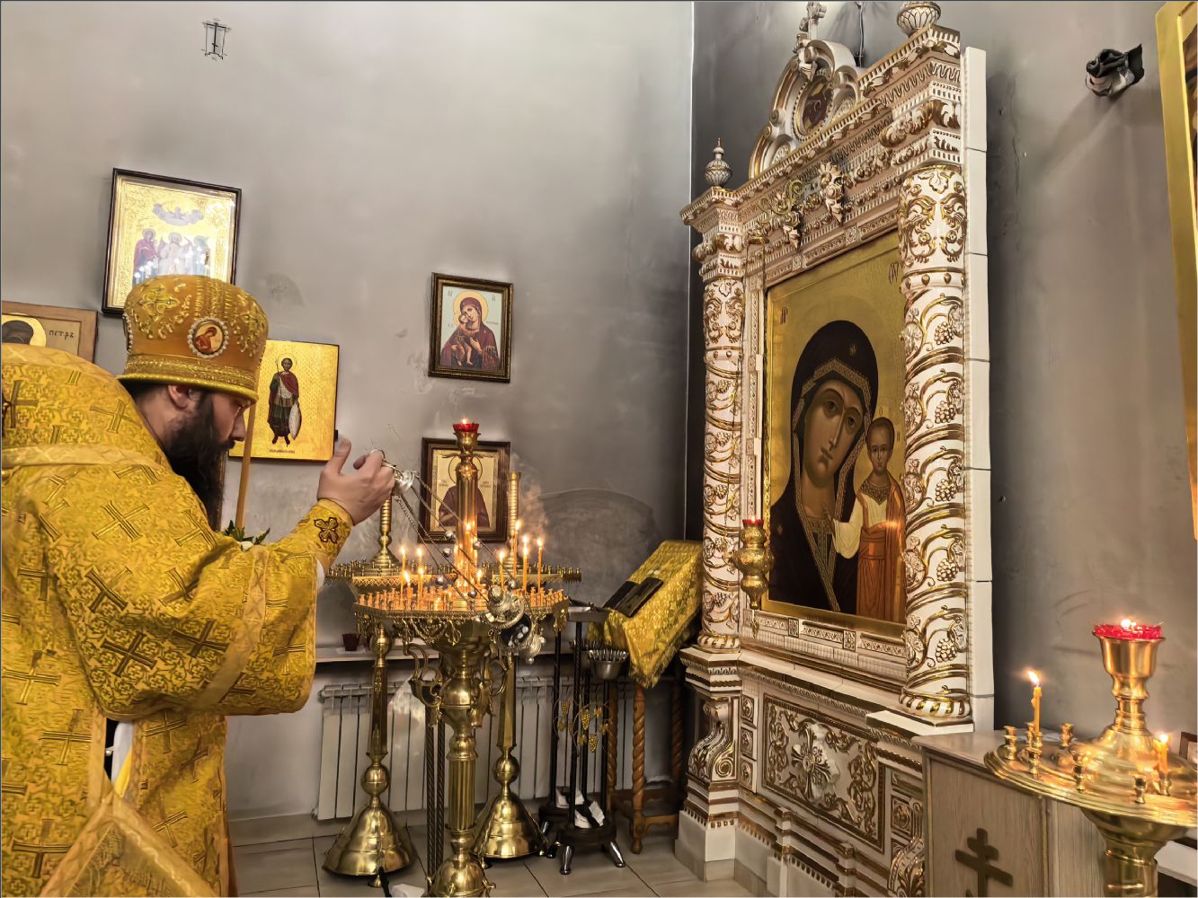 Его Преосвященству сослужили благочинный Закамского округа протоиерей Андрей Дубровин, клирики Казанско-Богородицкого храма иерей Алексий Носов, иерей Филипп Удовенко и иерей Иоанн Можаев, клирик Свято-Вознесенского кафедрального собора иерей Сергий Иноземцев. Диаконский чин возглавил протодиакон Дмитрий Половников. Песнопения исполнили приходской хор под управлением Татьяны Вылку.