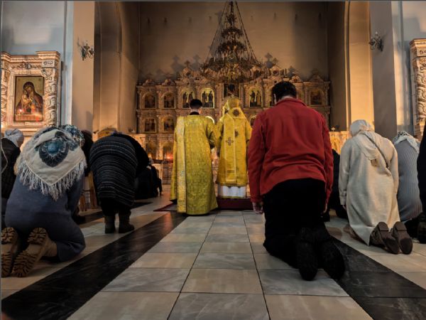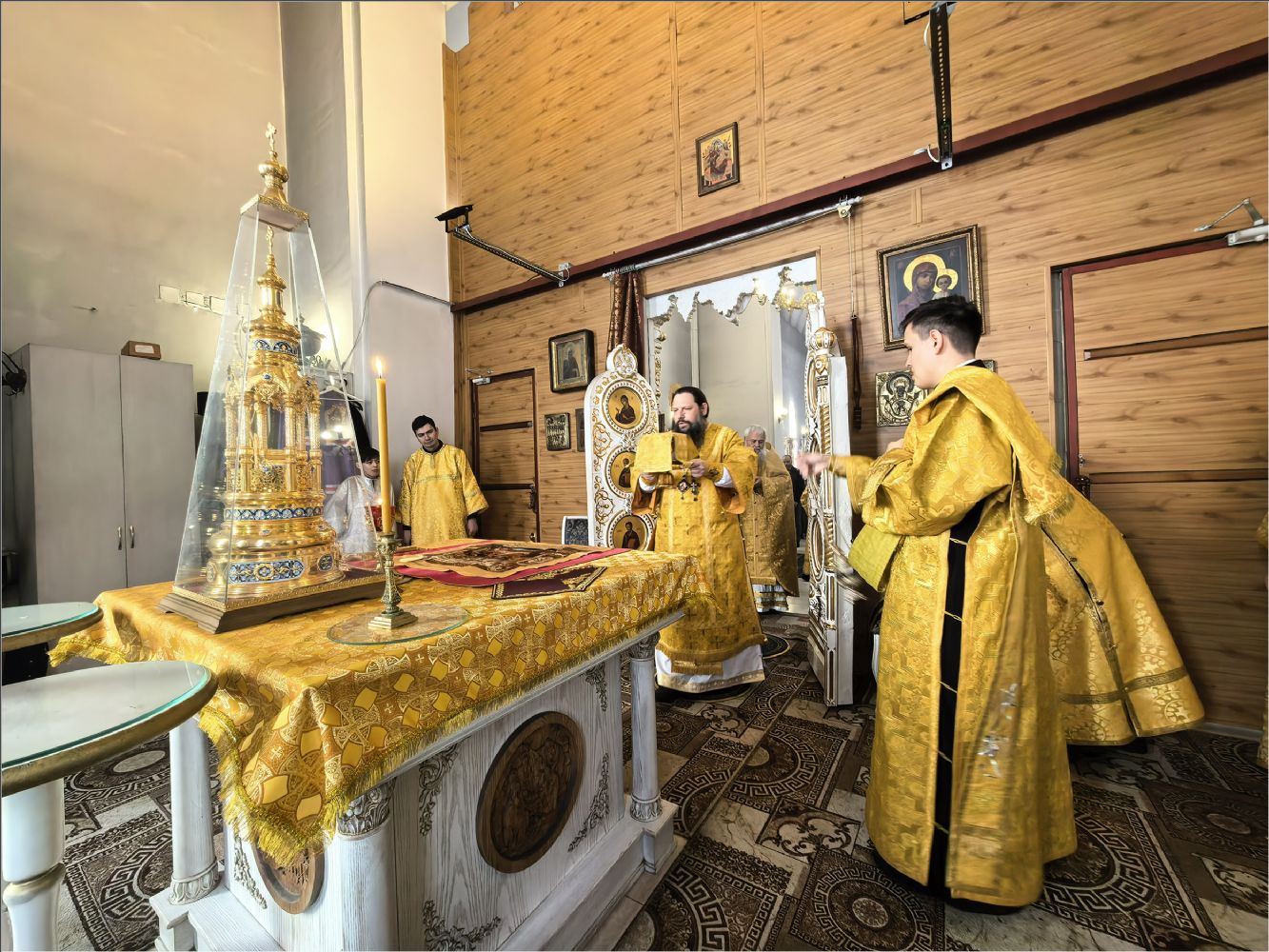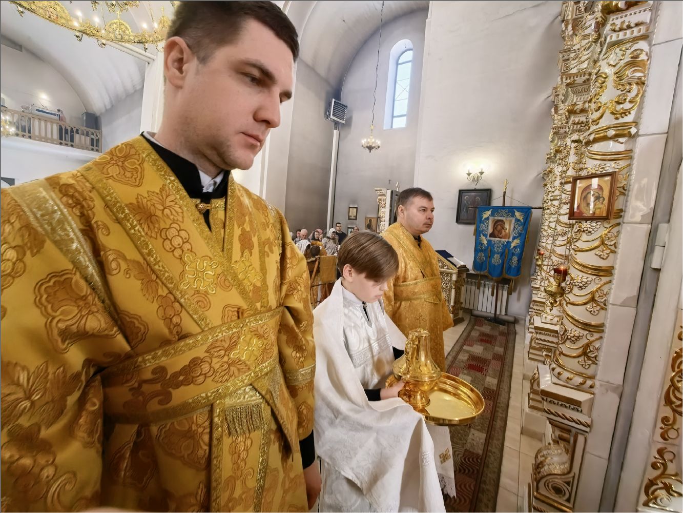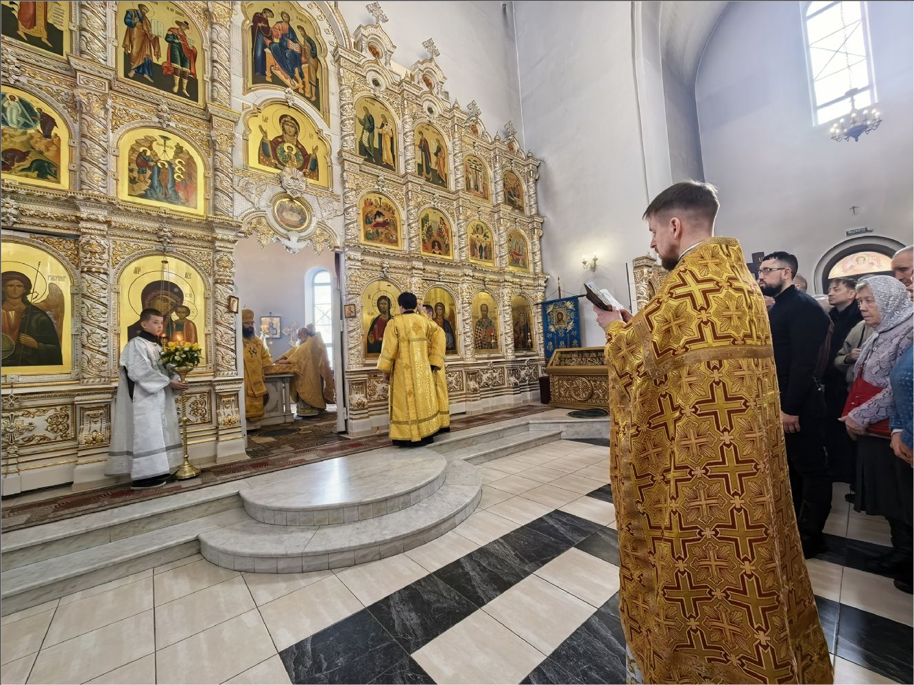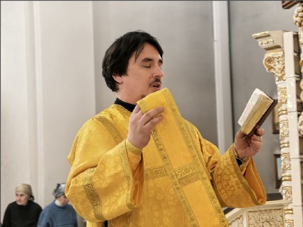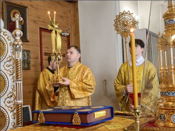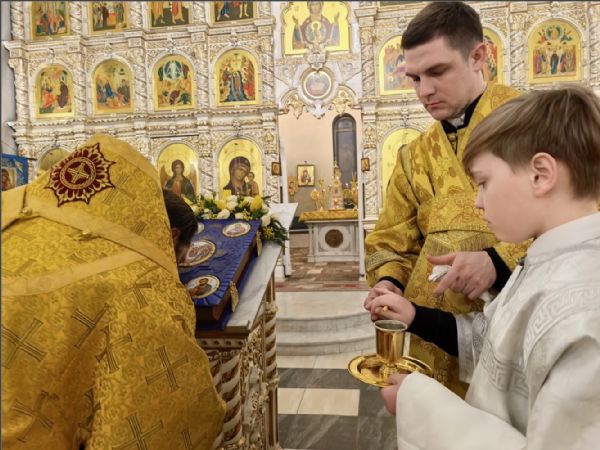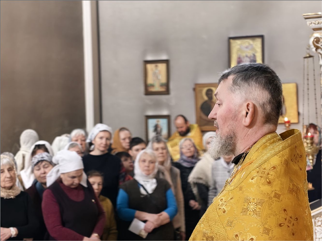 На мирной и сугубой ектениях были вознесены молитвы о Российском воинстве и о мире. По запричастном стихе проповедь произнёс иерей Алексий Носов. В своей речи священник коснулся темы покаяния, духовного обновления и значения поста как времени особого молитвенного труда и самосовершенствования.