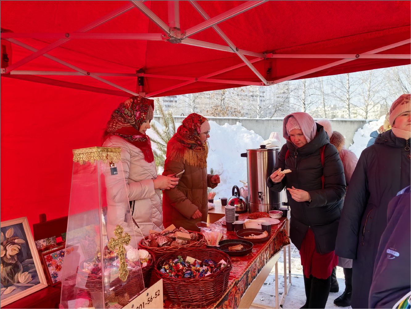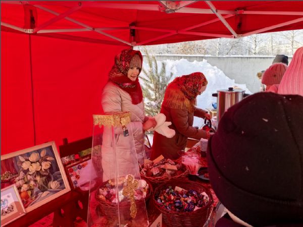 После богослужения епископ Гавриил посетил благотворительную масленичную ярмарку, организованную на территории прихода. Мероприятие собрало множество горожан и прихожан. На ярмарке были представлены изделия народных промыслов, домашняя выпечка и угощения, сувениры ручной работы.