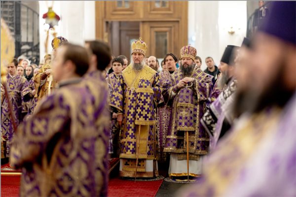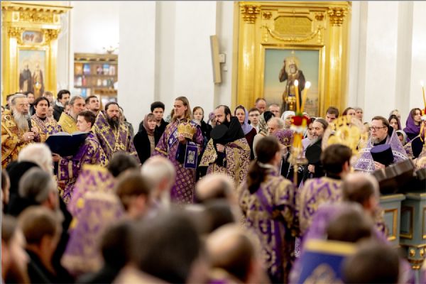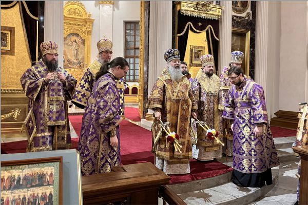 Вечером 1 марта 2026 года, в Неделю 1-ю Великого поста, Торжества Православия, митрополит Казанский и Татарстанский Кирилл, митрополит Леонид (Горбачёв), епископ Чистопольский и Нижнекамский Пахомий, епископ Альметьевский и Бугульминский Мефодий и епископ Набережночелнинский и Елабужский Гавриил совершили чин Торжества Православия в кафедральном соборе Казанской иконы Божией Матери Казанского Богородицкого мужского монастыря.