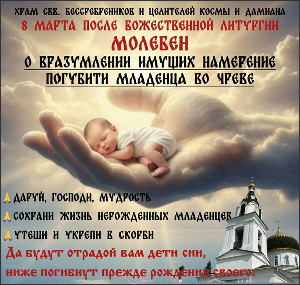 Молебен в защиту жизни нерождённых младенцев пройдет в храме Космы и Дамиана