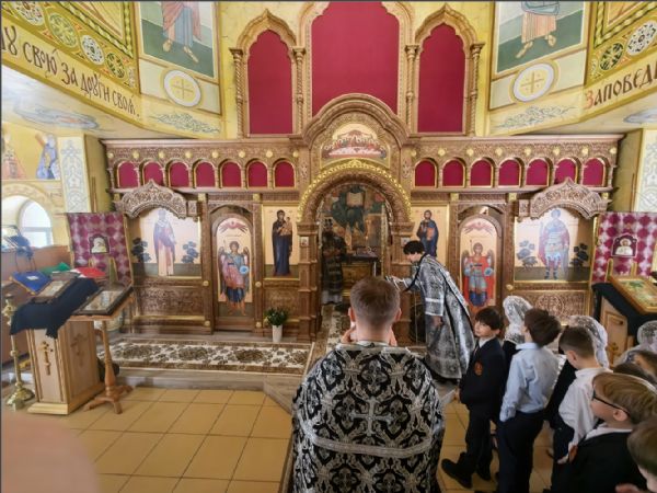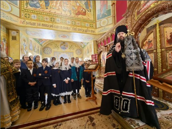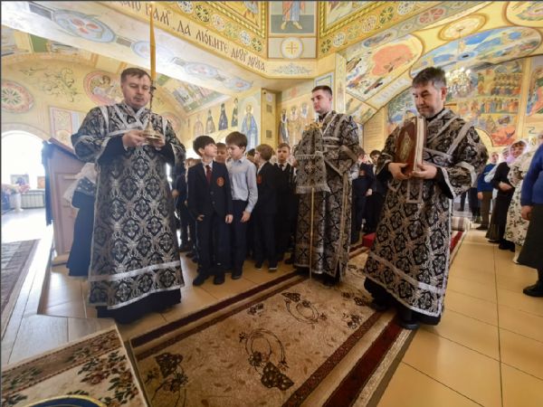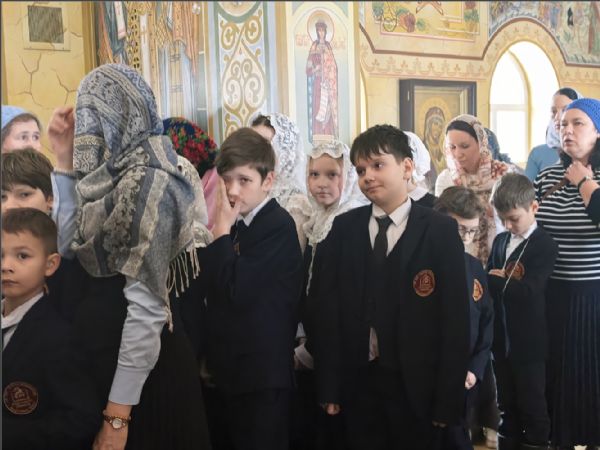 На Литургии молились учащиеся и преподаватели православной гимназии великомученика Георгия Победоносца. Ученики причастились Святых Христовых Таин.
