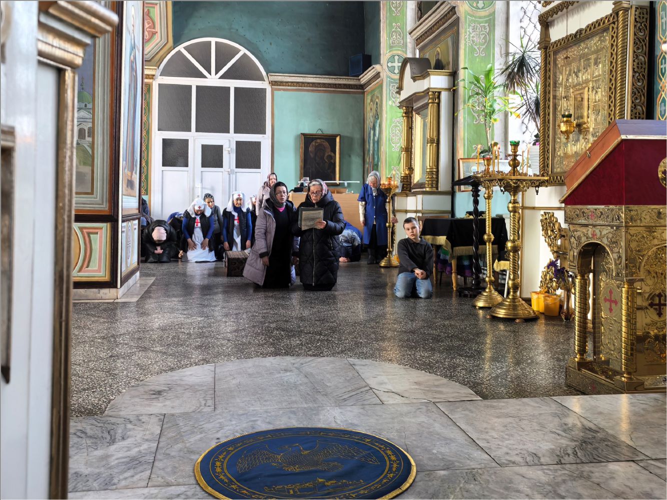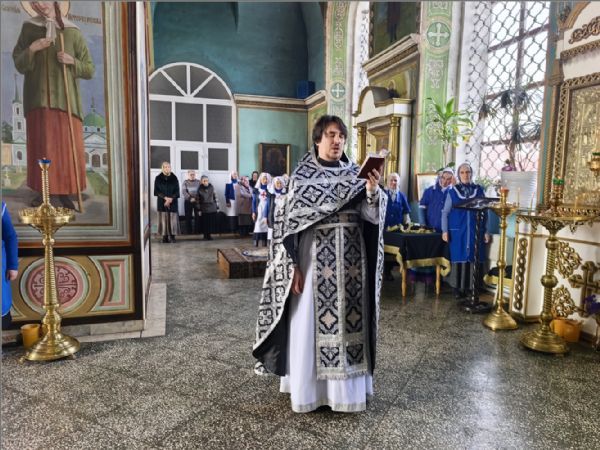 Диаконский чин возглавил протодиакон Дмитрий Половников. Песнопения исполнил приходской хор под управлением Валентины Лепихиной. После сугубой ектении была вознесена молитва о Святой Руси. Проповедь по запричастном стихе произнес иеромонах Феодор (Деревнин).