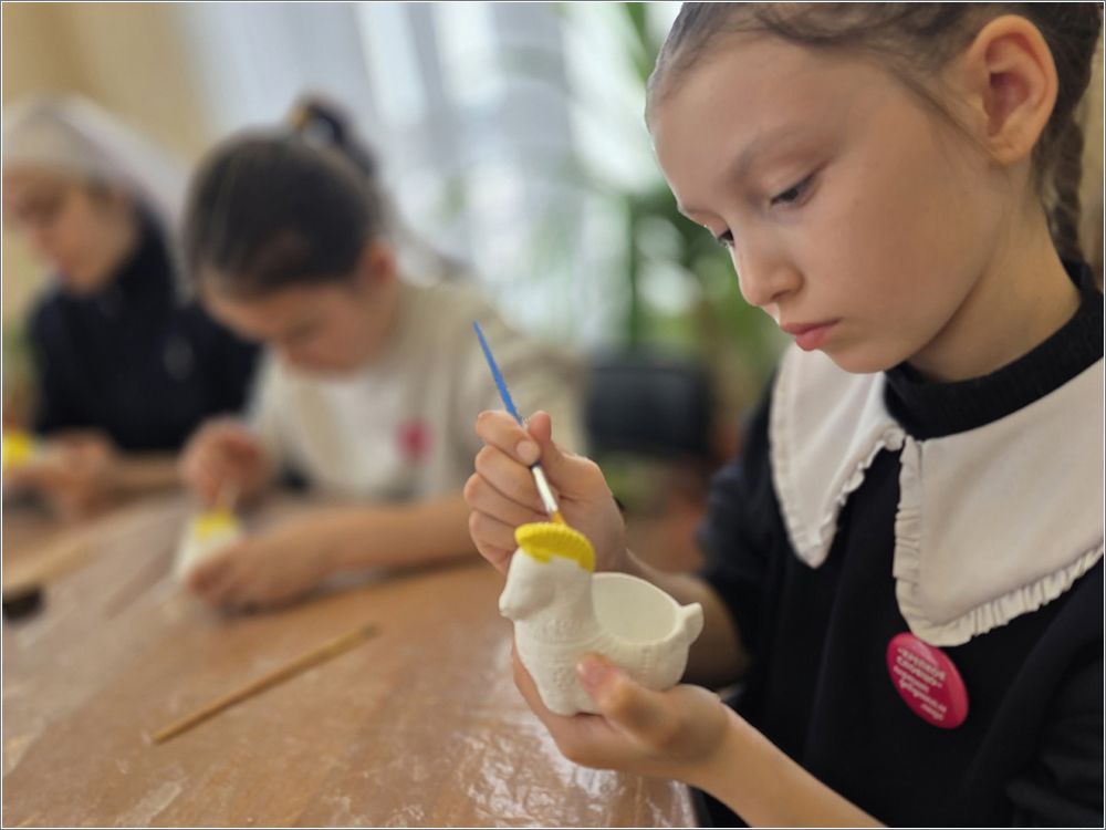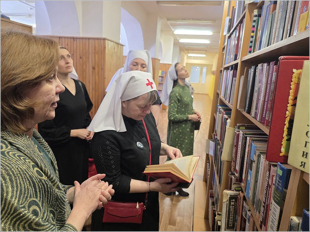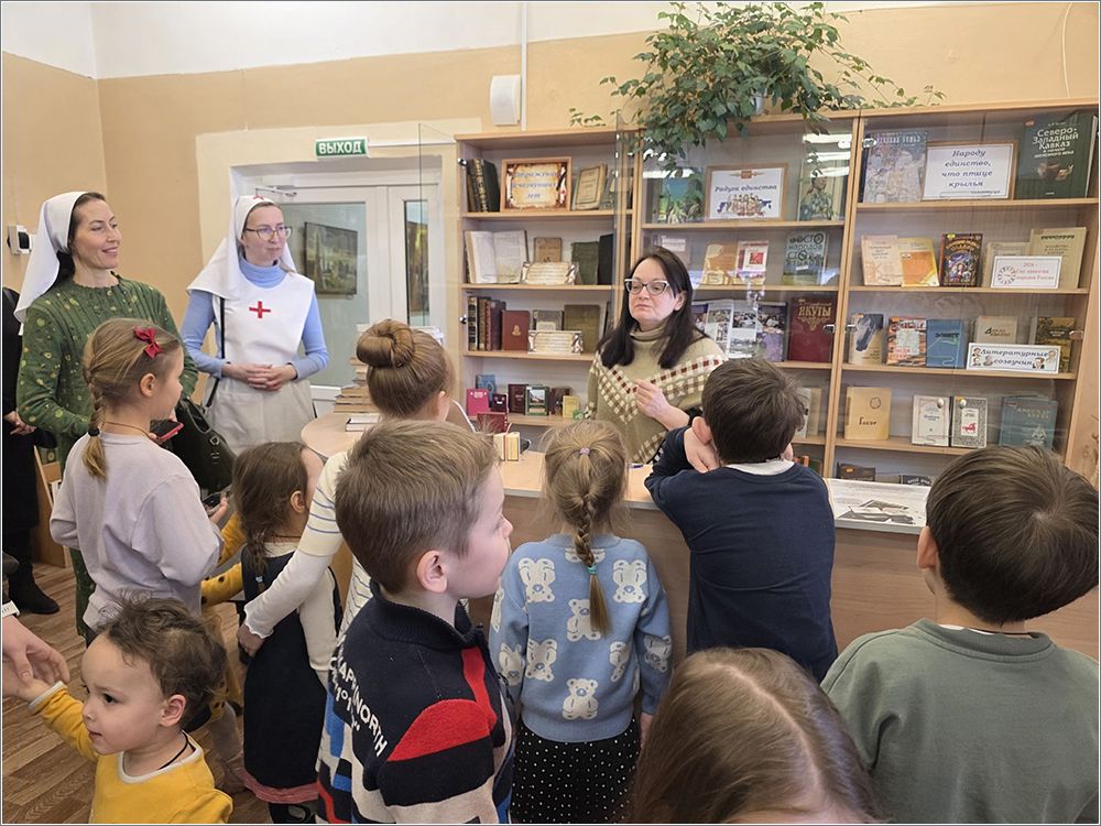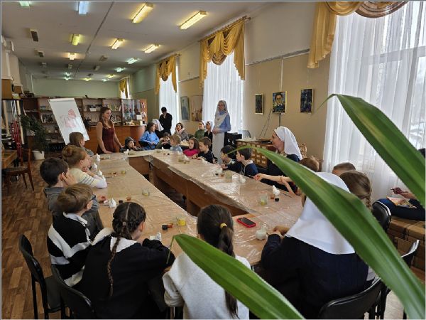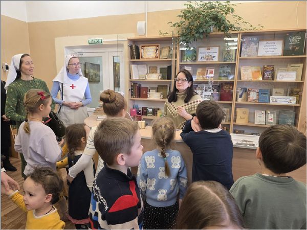 В храме преподобного Серафима Саровского сестры милосердия Свято‑Серафимовского сестричества, добровольцы, дети воскресной школы «Зёрнышко», родители и преподаватели посетили Центральную библиотеку Набережных Челнов. Работники библиотеки провели для гостей экскурсию и познакомили с молитвословом XVI века. Участники с интересом изучали старинные тексты, обсуждали особенности церковнославянского языка и выбирали интересные книги для чтения. После экскурсии все приняли участие в мастер‑классе по изготовлению подставки под яйцо — будущие пасхальные подарки для родных и изделия для Пасхальной ярмарки.