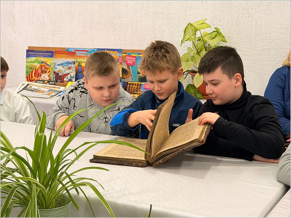 Гости узнали об истории праздника, истоках книгопечатания на Руси и его роли в распространении духовных знаний. Ярким моментом стал обмен книгами: ребята принесли любимые издания из домашних библиотек и с воодушевлением делились впечатлениями. Отец Роман предоставил для ознакомления старинные книги 1873 года из архива собора — возможность прикоснуться к страницам, которым более полутора веков, вызвала у гостей искреннее восхищение.