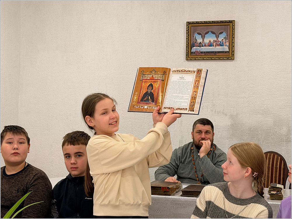 Старшая группа посвятила время обмену впечатлениями: учащиеся поделились друг с другом любимыми прочитанными книгами. Духовник школы иерей Иоанн Можаев рассказал о простых ориентирах, которые помогут оценить пользу той или иной литературы. По доброй традиции каждый юный участник получил в подарок памятную книгу.