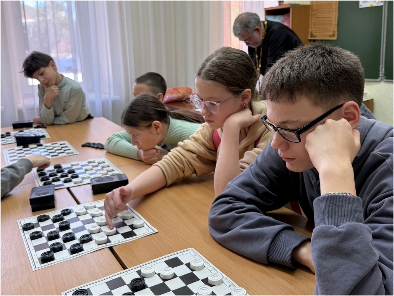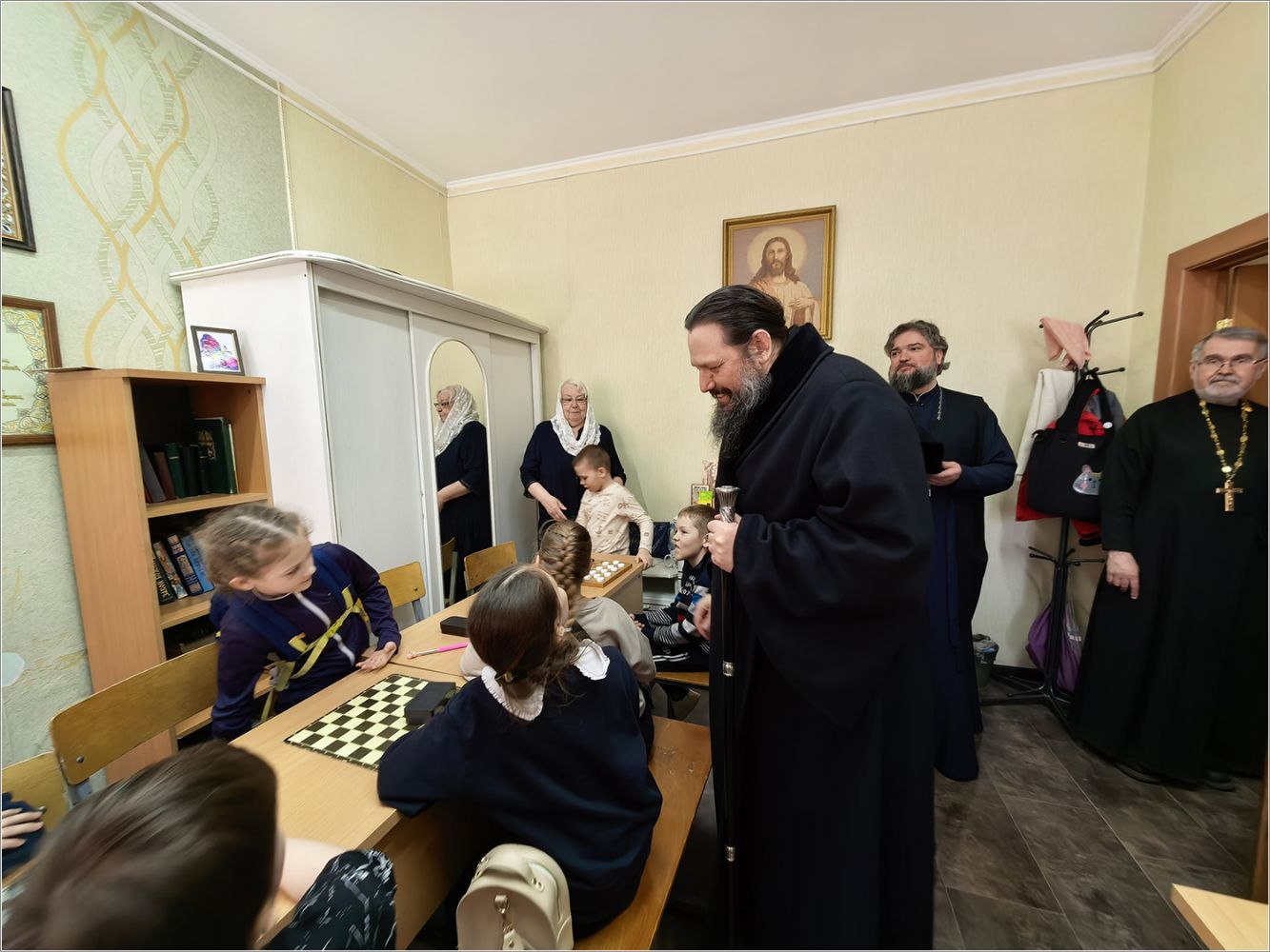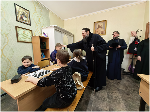 Мероприятие посетил епископ Набережночелнинский и Елабужский Гавриил. Владыка тепло поприветствовал всех участников, поделился личным воспоминанием о том, как в юные годы с увлечением играл в шашки. Он отметил, что подобные состязания не только развивают логику и стратегическое мышление, но и воспитывают характер — учат достойно принимать и победу, и поражение, укрепляют дружеские связи и сплачивают людей. Владыка подчеркнул ценность спортивного духа, пронизанного взаимным уважением, пожелал радости от игры и не унывать в случае неудачи. Затем епископ преподал собравшимся архипастырское благословение.