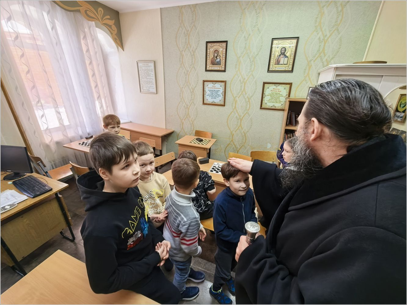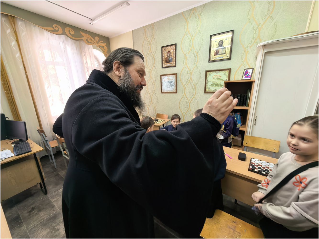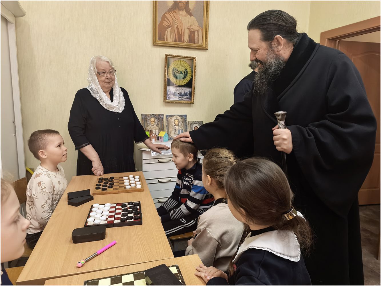 Мероприятие посетил епископ Набережночелнинский и Елабужский Гавриил. Владыка тепло поприветствовал всех участников, поделился личным воспоминанием о том, как в юные годы с увлечением играл в шашки. Он отметил, что подобные состязания не только развивают логику и стратегическое мышление, но и воспитывают характер — учат достойно принимать и победу, и поражение, укрепляют дружеские связи и сплачивают людей. Владыка подчеркнул ценность спортивного духа, пронизанного взаимным уважением, пожелал радости от игры и не унывать в случае неудачи. Затем епископ преподал собравшимся архипастырское благословение.