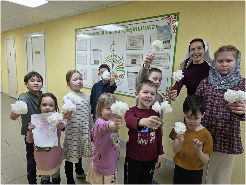 Ещё один пример — детская воскресная школа «Звёздочка» при храме Казанской иконы Божией Матери. 29 марта педагоги и учащиеся вместе собирали белые цветы, внося свой вклад в предстоящую благотворительную акцию.