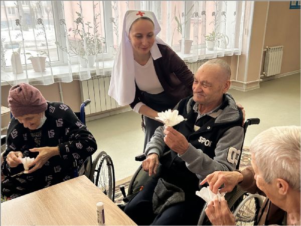 Ярким примером такого служения стал мастер‑класс, проведённый сестричеством во имя преподобномученицы Елисаветы Феодоровны при храме святых бессребреников Космы и Дамиана. Сестры Ника и Любовь организовали творческую встречу в Набережночелнинском доме‑интернате для престарелых и инвалидов. Участники с радостью и ответственностью взялись за работу: для многих из них возможность быть причастными к общему доброму делу стала источником духовной поддержки, согрела душу и подняла настроение.