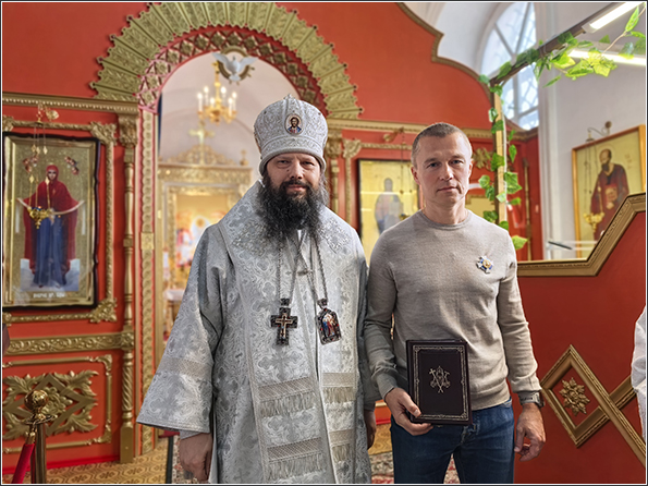 Епископ Набережночелнинский и Елабужский Гавриил за помощь Набережночелнинской епархии и Русской Православной Церкви вручил Леониду Барышеву и Вадиму Махееву ордена Даниила Московского III степени от Святейшего Патриарха Московского и всея Руси Кирилла.