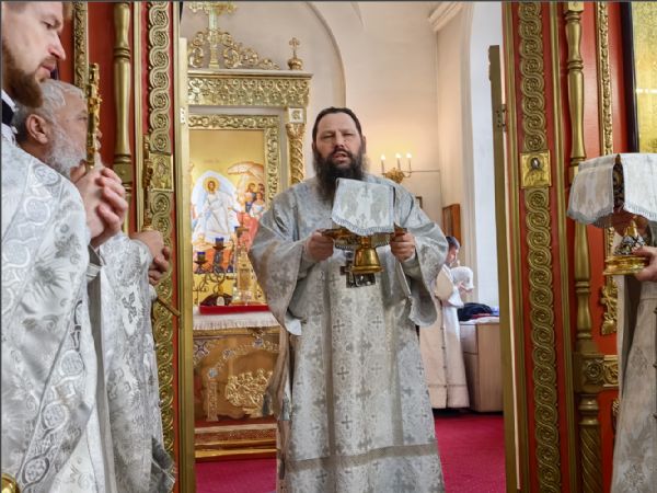 Песнопения богослужения исполнил приходской хор под управлением Натальи Кучерявенко. На сугубой и мирной ектениях были вознесены молитвы о Российском воинстве и о мире. Проповедь по запричастном стихе произнес иерей Дмитрий Русин.