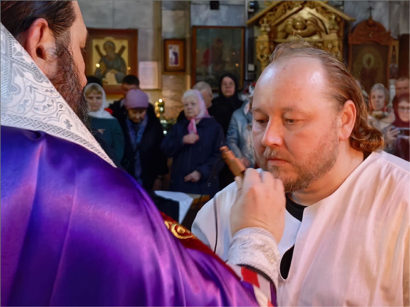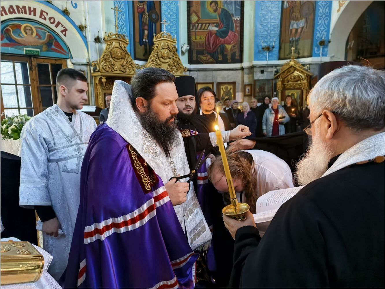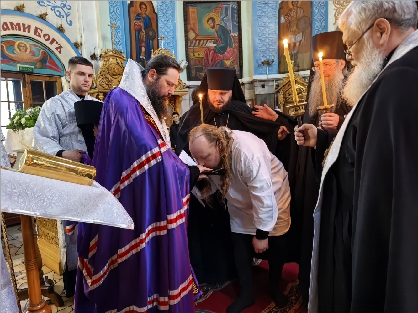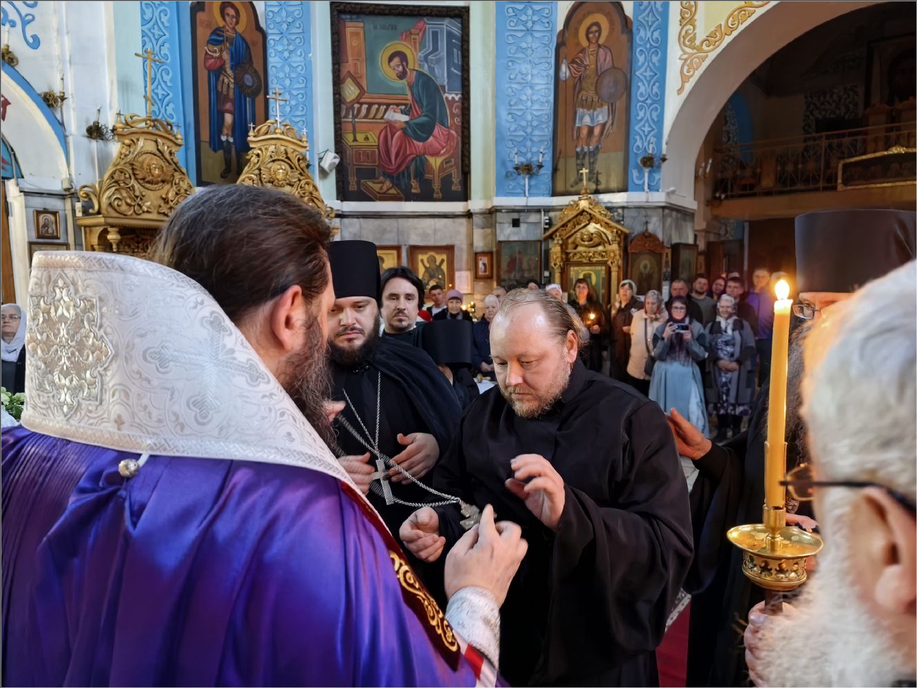 «Мы были свидетелями монашеского пострига, который впервые совершается в Боровецком храме, несмотря на его древность. Поздравьте нового монаха — иеромонаха Кирилла. Прежде он был рясофором, начинающим монахом, послушником. Ныне же он принял малую схиму, ангельский образ и прошёл через таинство второго крещения.