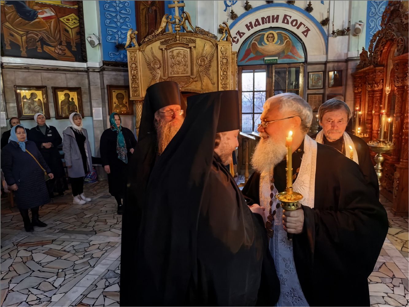Дорогой отец Кирилл, трудитесь по мере Ваших сил. А вы, братья и сёстры, позаботьтесь о нём, поддержите его вашей любовью и заботой. Желаю вам мира и добра. Аминь».