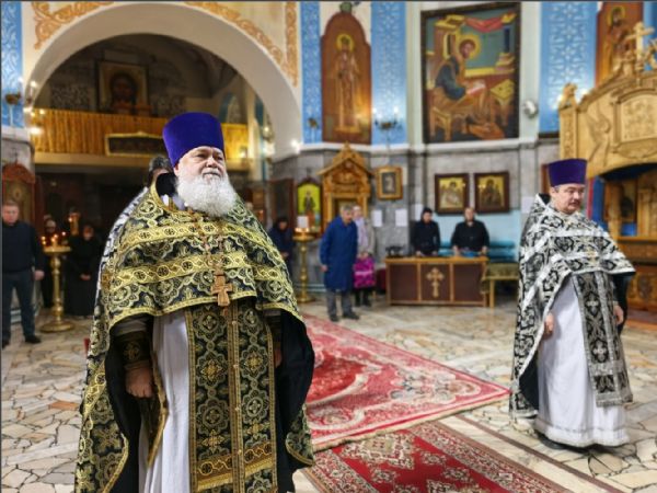 Во время Литургии Преждеосвященных Даров было прочитано Евангелие Великого Понедельника и вознесена молитва о мире.