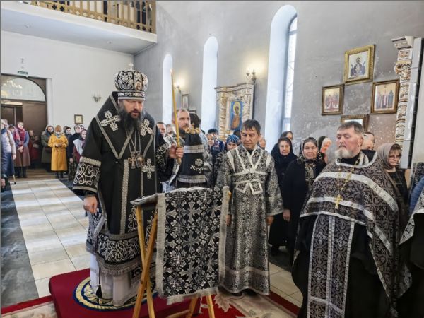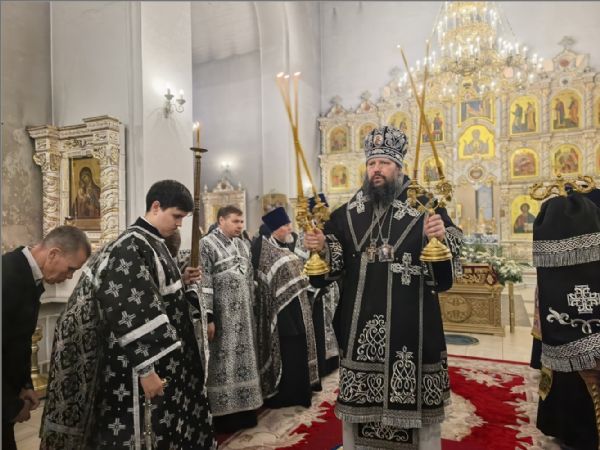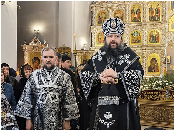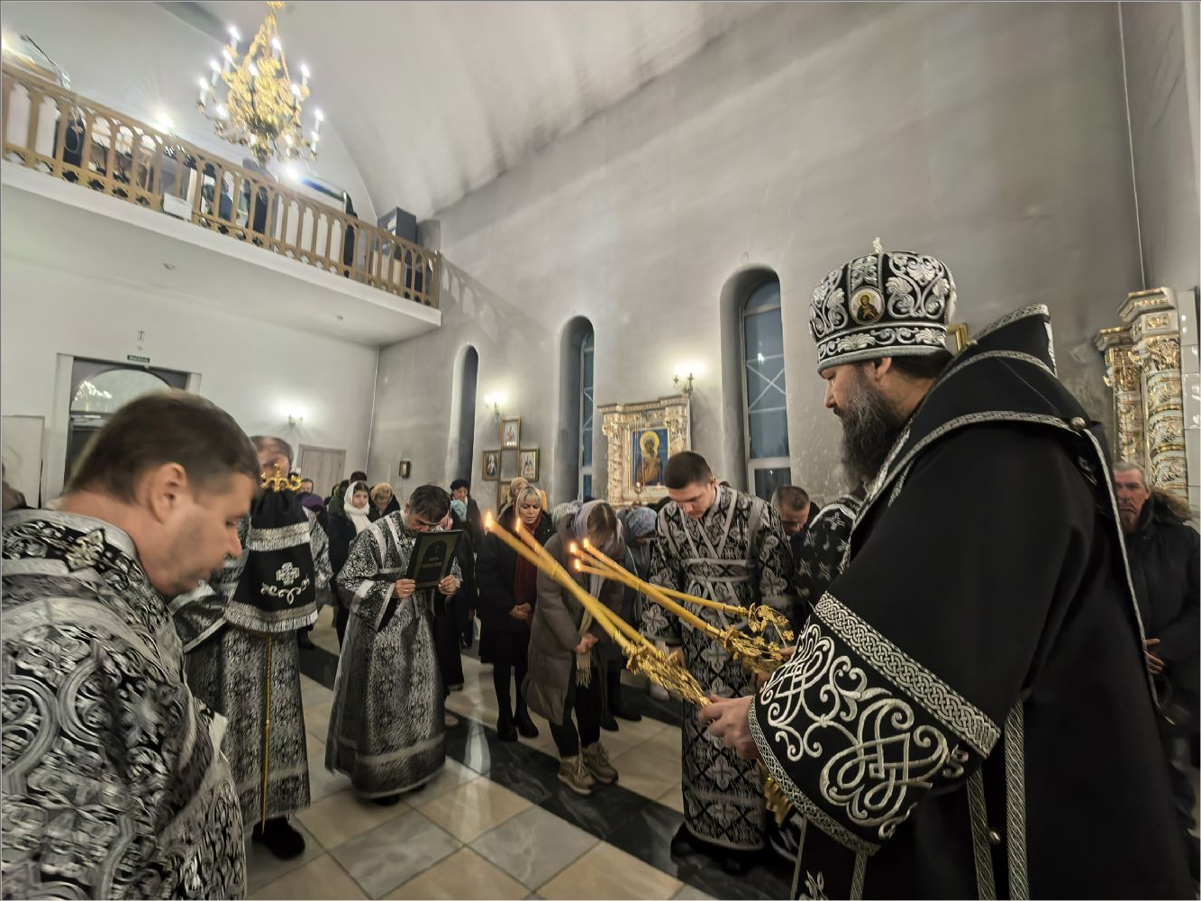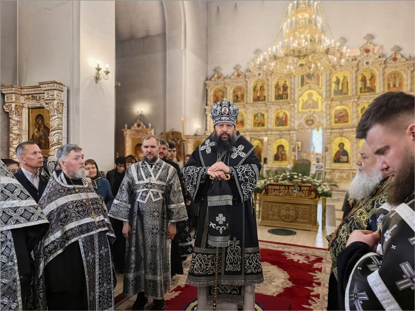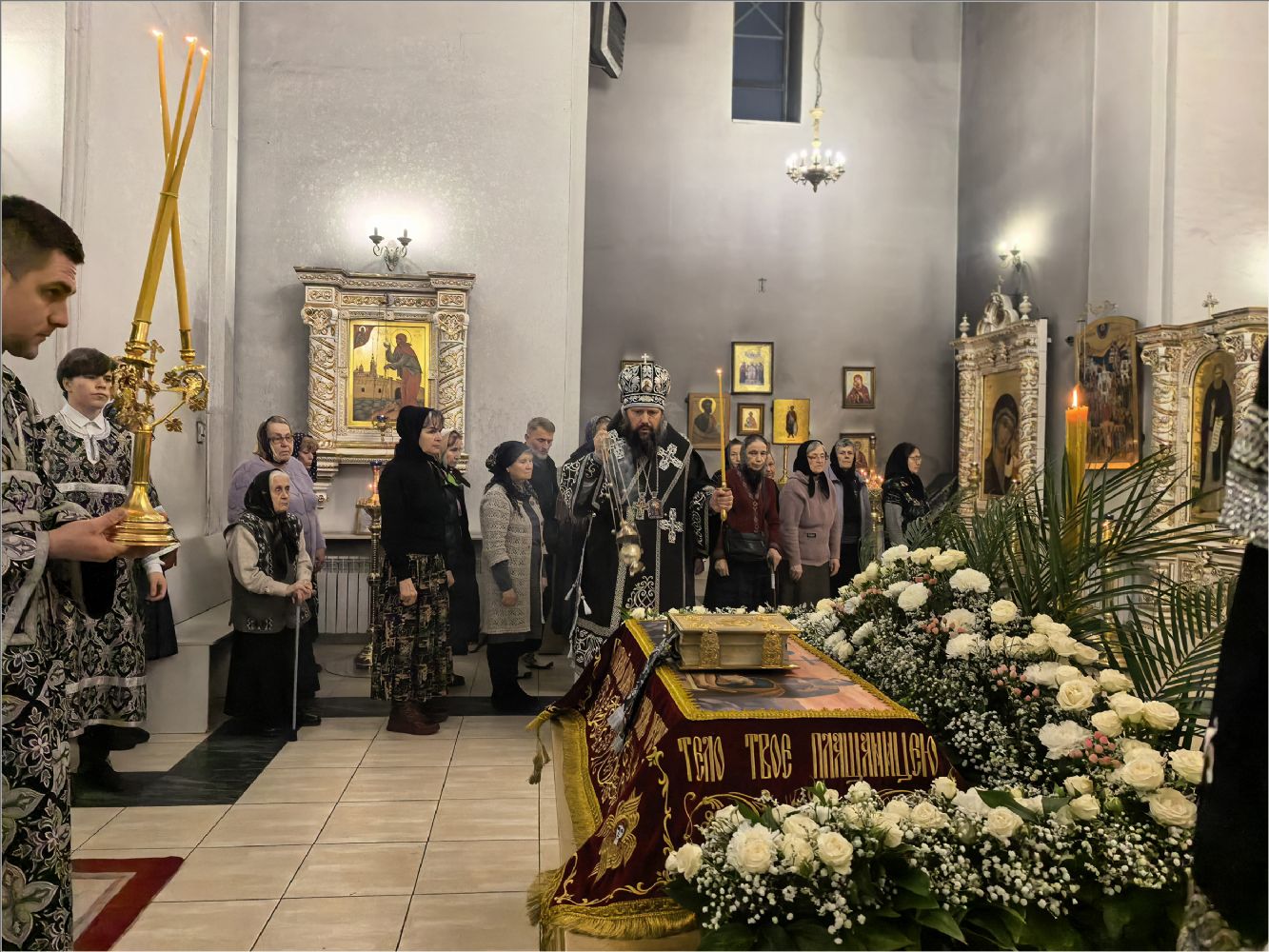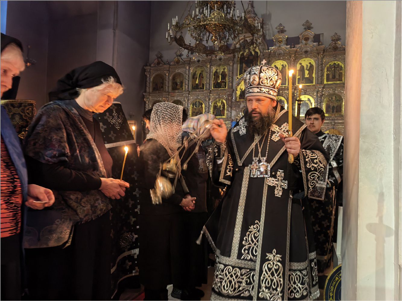 10 апреля 2026 года, в пятницу Страстной Седмицы — день воспоминаний Святых спасительных Страстей Господа нашего Иисуса Христа, епископ Набережночелнинский и Елабужский Гавриил совершил вечерню с чином выноса Святой Плащаницы в храме Казанской иконы Божией Матери города Набережные Челны.