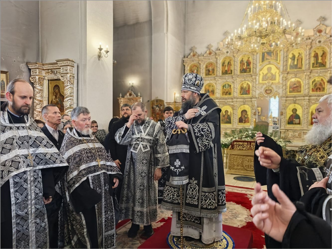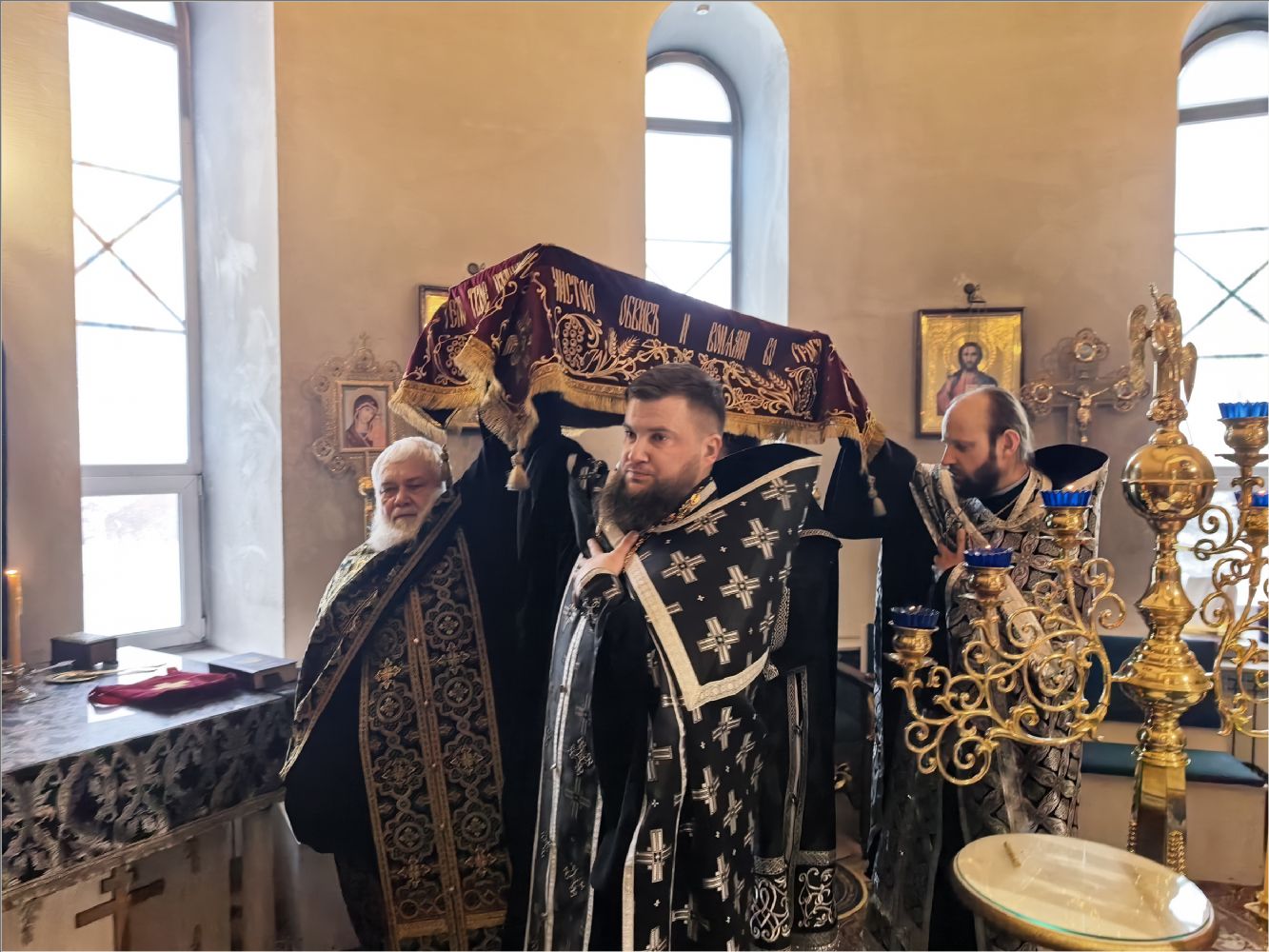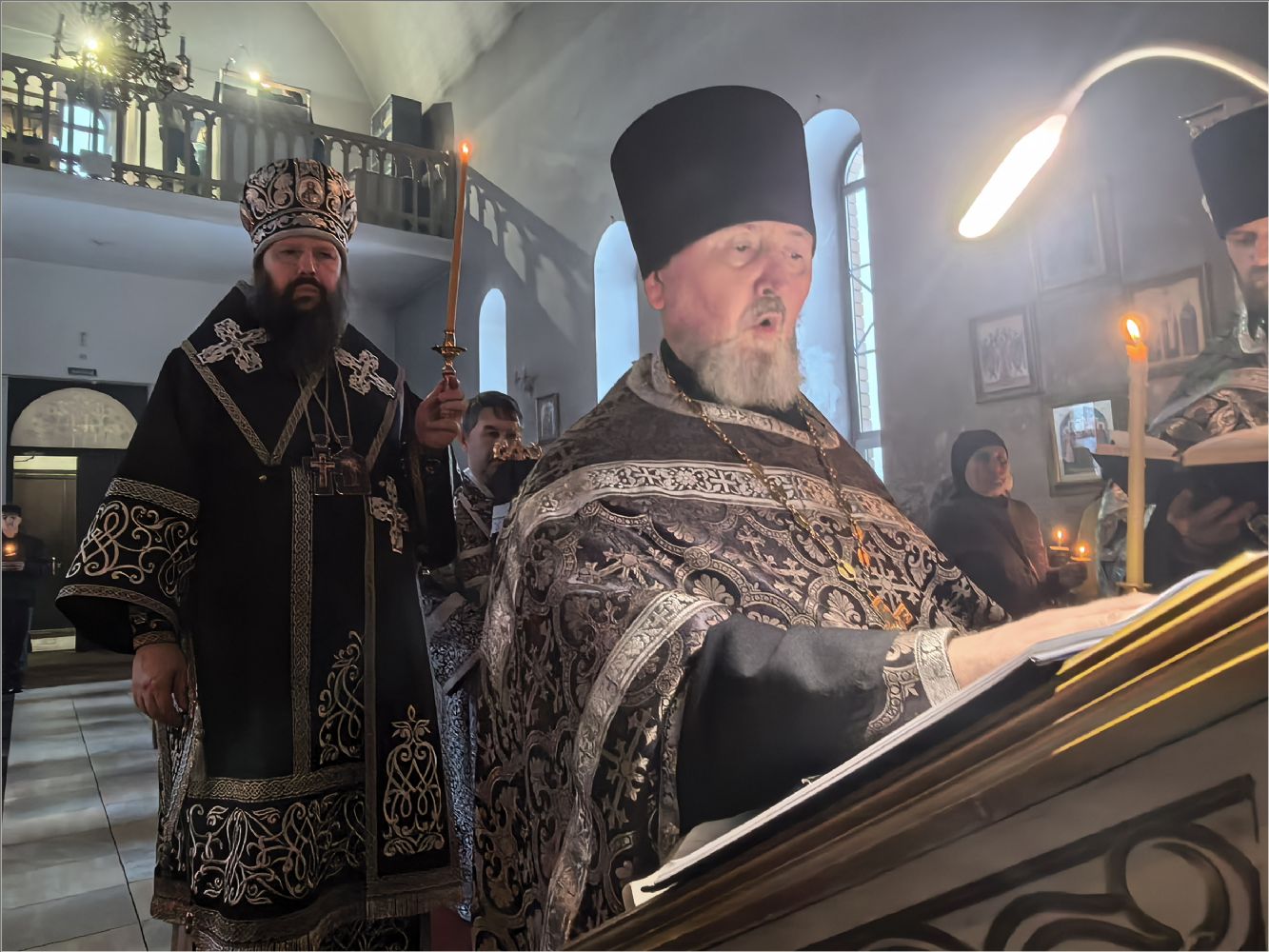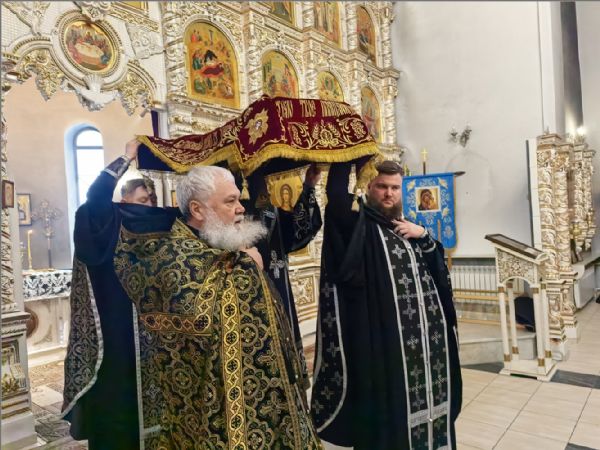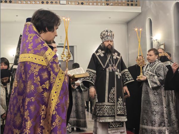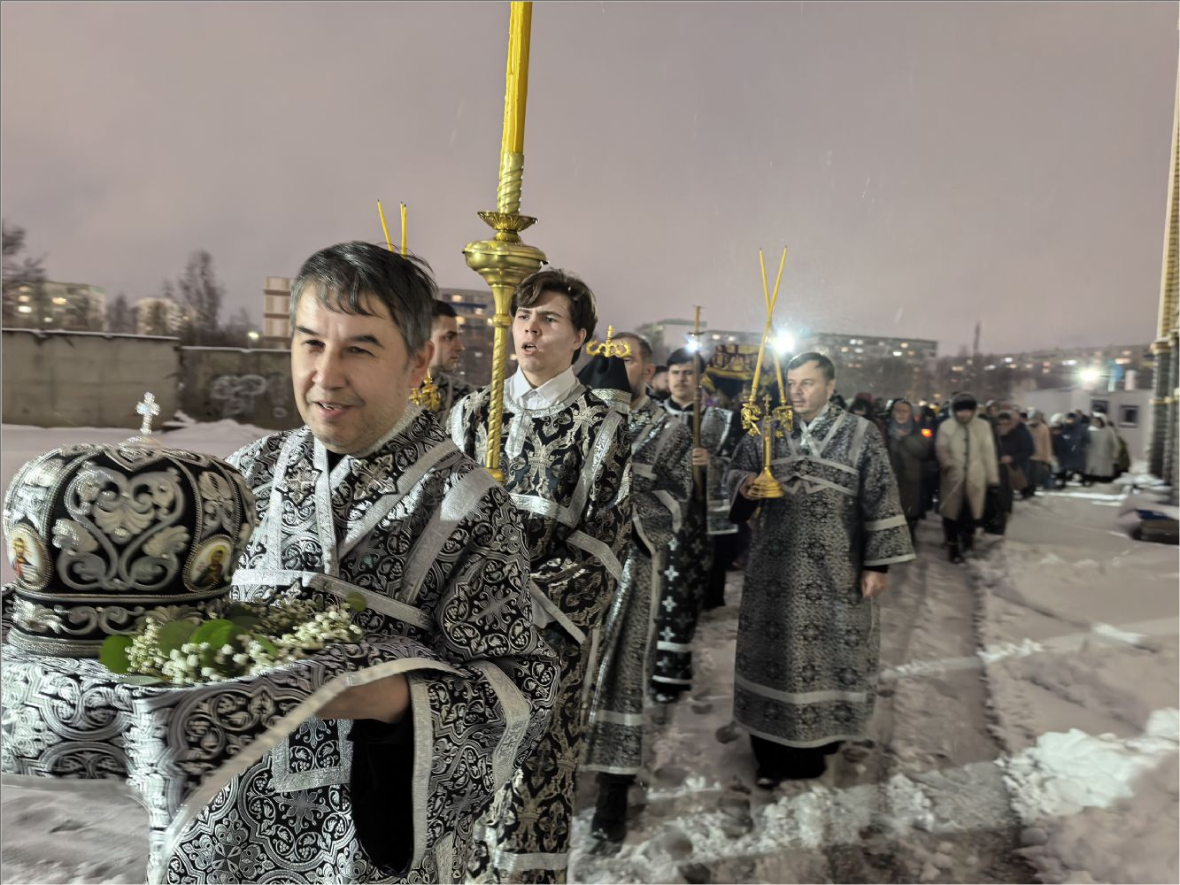 10 апреля 2026 года, в пятницу Страстной Седмицы — день воспоминаний Святых спасительных Страстей Господа нашего Иисуса Христа, епископ Набережночелнинский и Елабужский Гавриил совершил вечерню с чином выноса Святой Плащаницы в храме Казанской иконы Божией Матери города Набережные Челны.