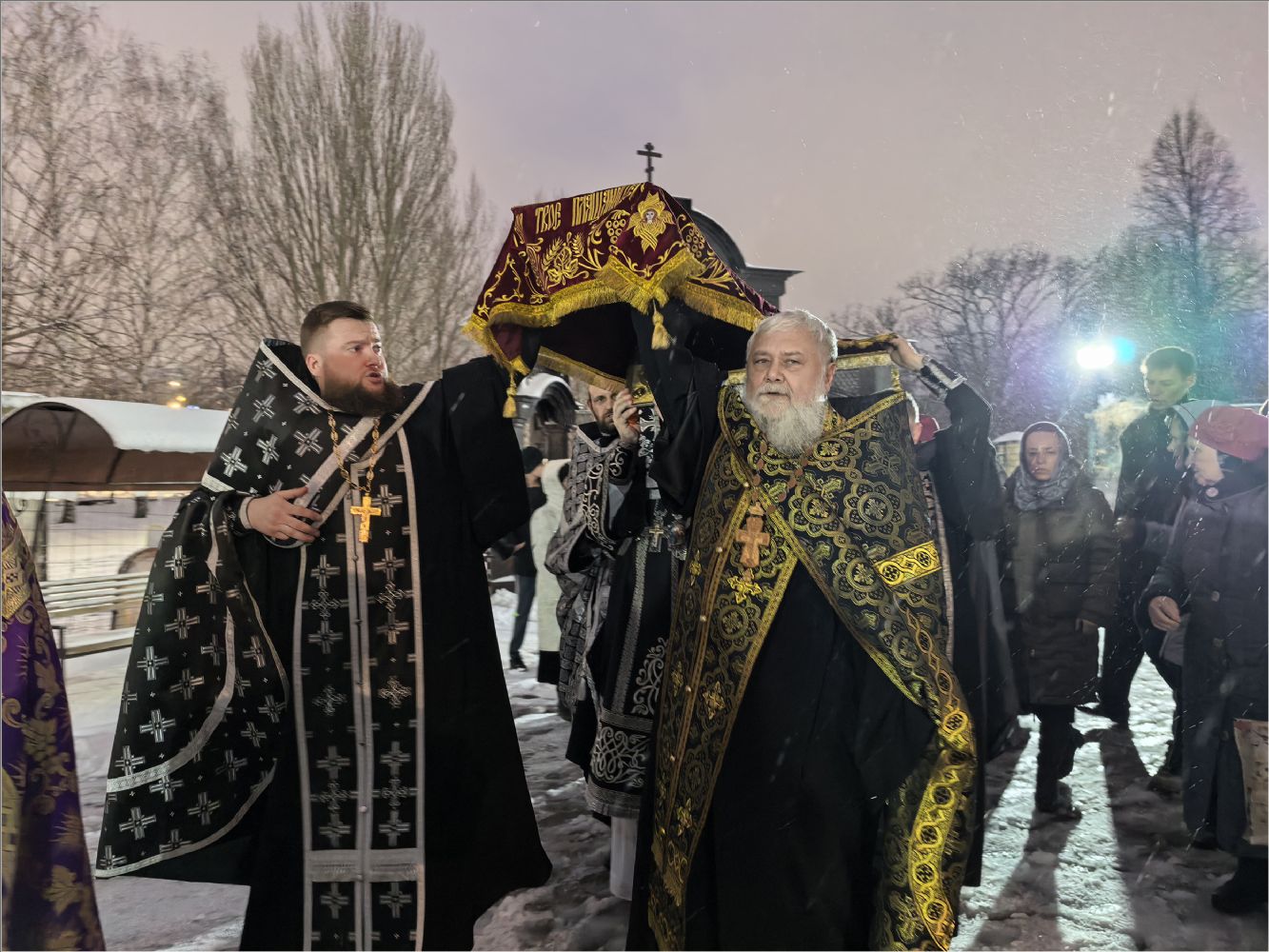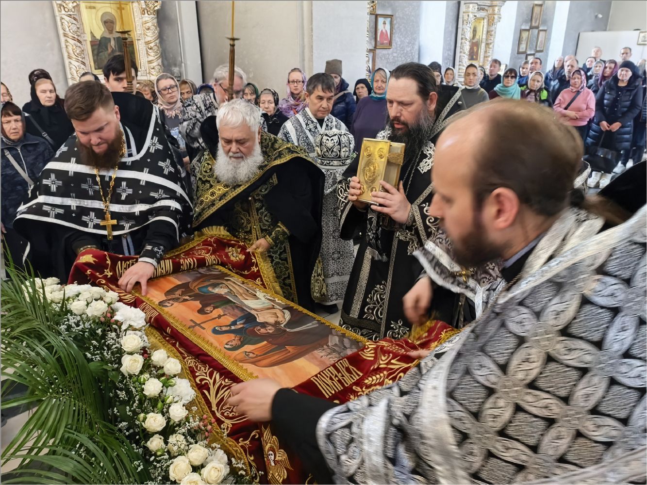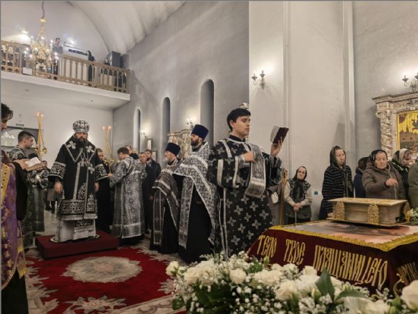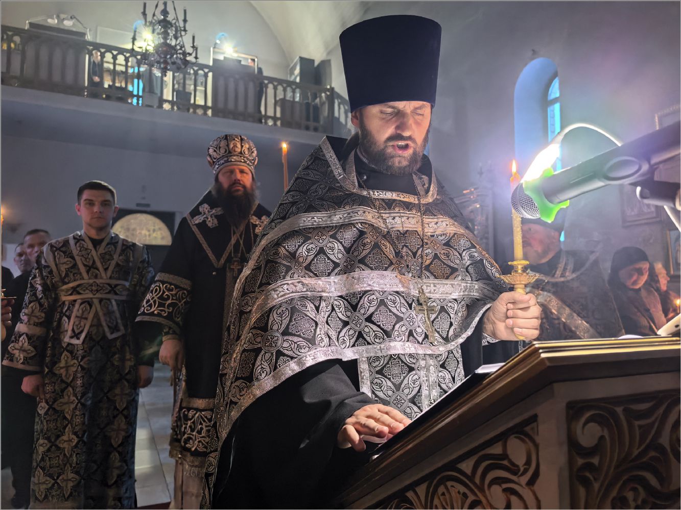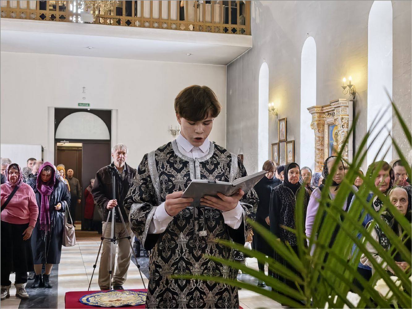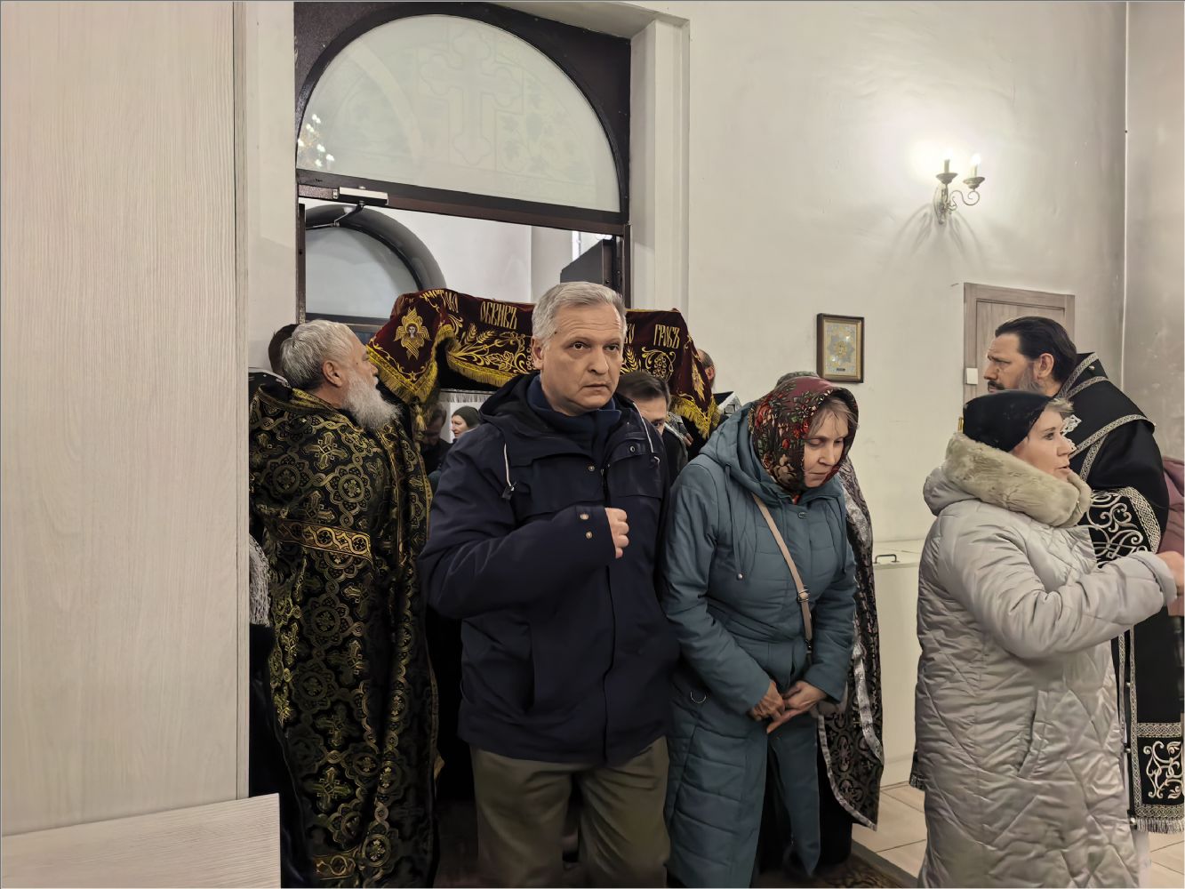 10 апреля 2026 года, в пятницу Страстной Седмицы — день воспоминаний Святых спасительных Страстей Господа нашего Иисуса Христа, епископ Набережночелнинский и Елабужский Гавриил совершил вечерню с чином выноса Святой Плащаницы в храме Казанской иконы Божией Матери города Набережные Челны.