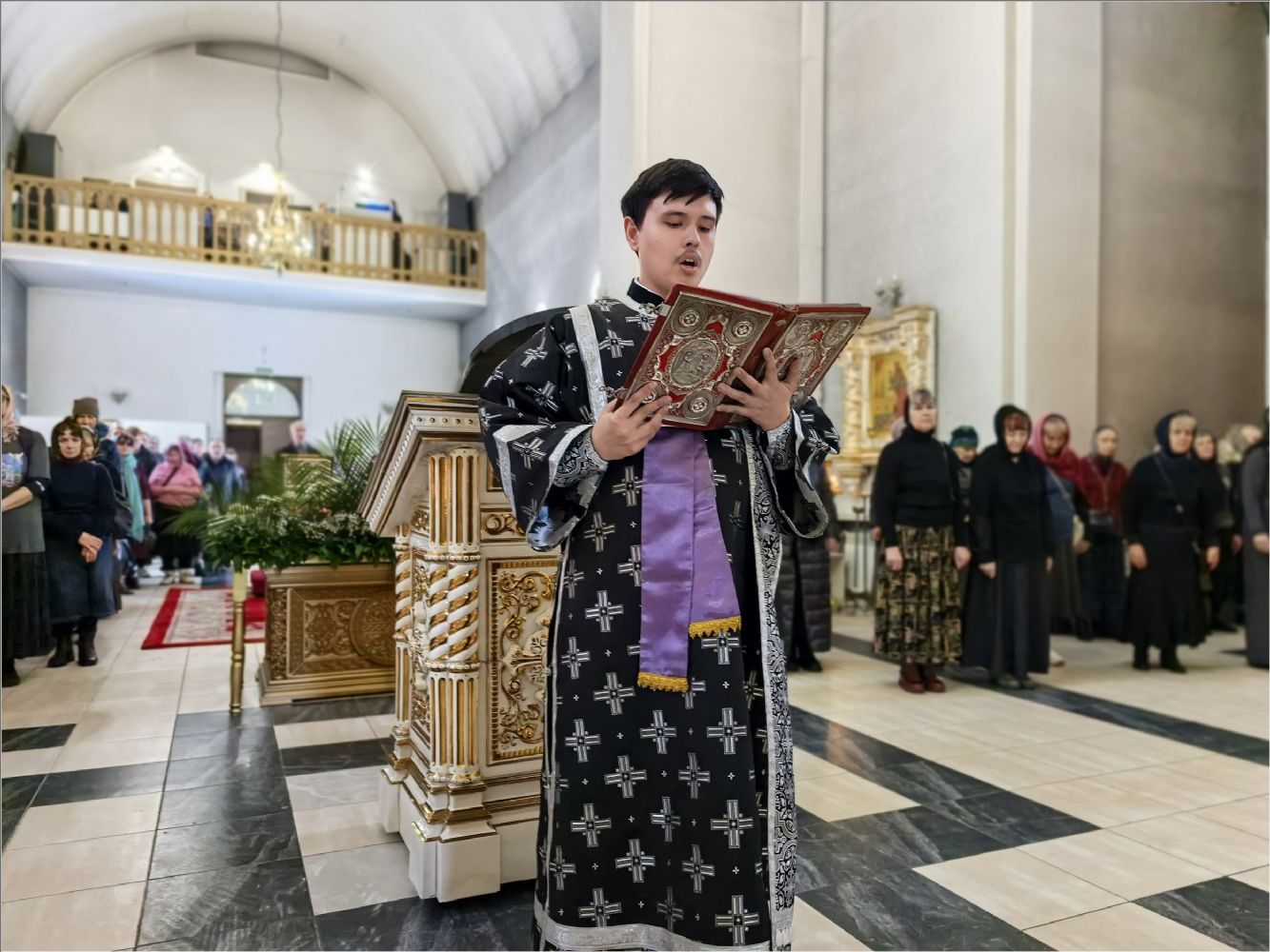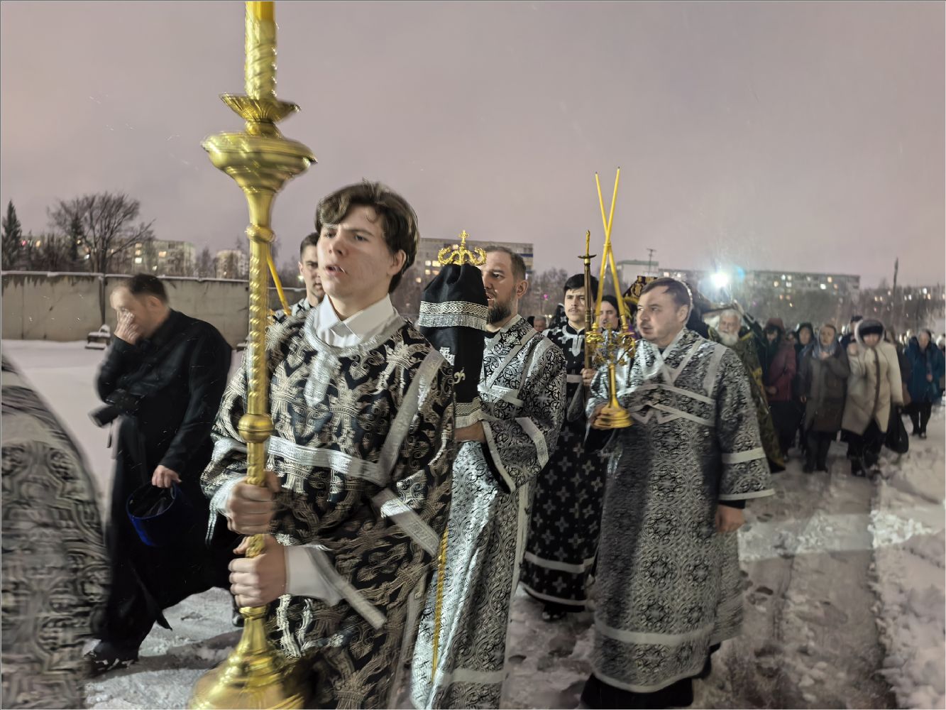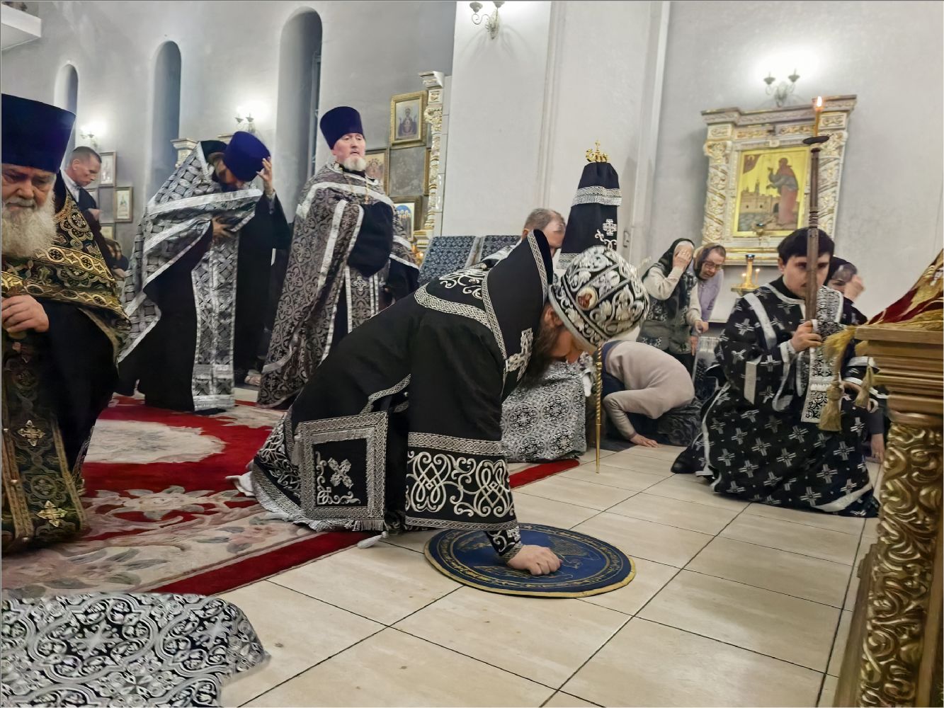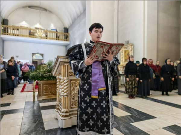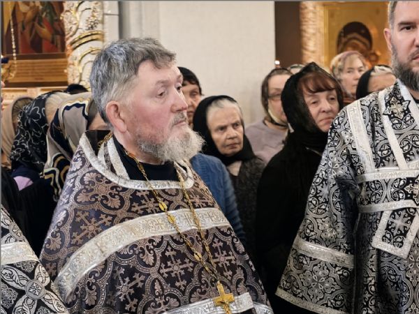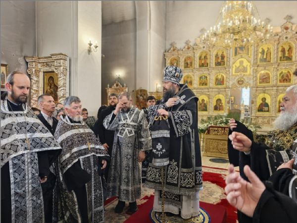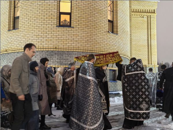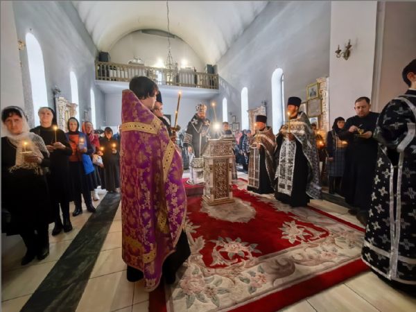 10 апреля 2026 года, в пятницу Страстной Седмицы — день воспоминаний Святых спасительных Страстей Господа нашего Иисуса Христа, епископ Набережночелнинский и Елабужский Гавриил совершил вечерню с чином выноса Святой Плащаницы в храме Казанской иконы Божией Матери города Набережные Челны.