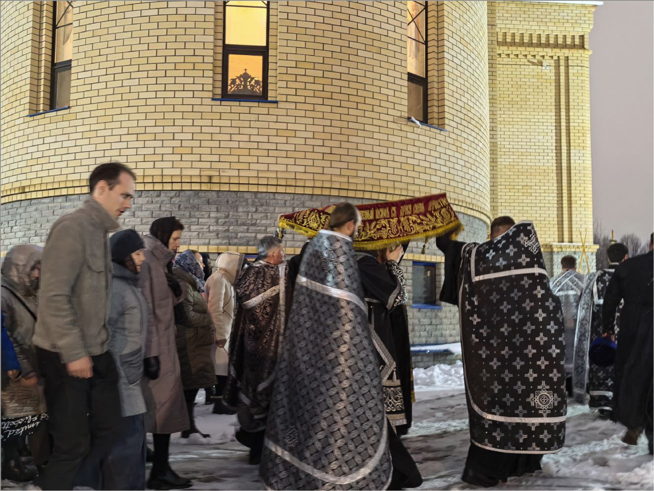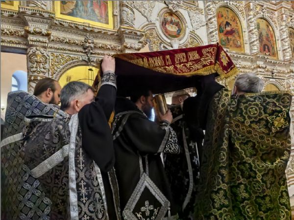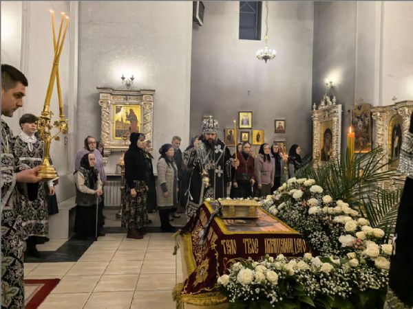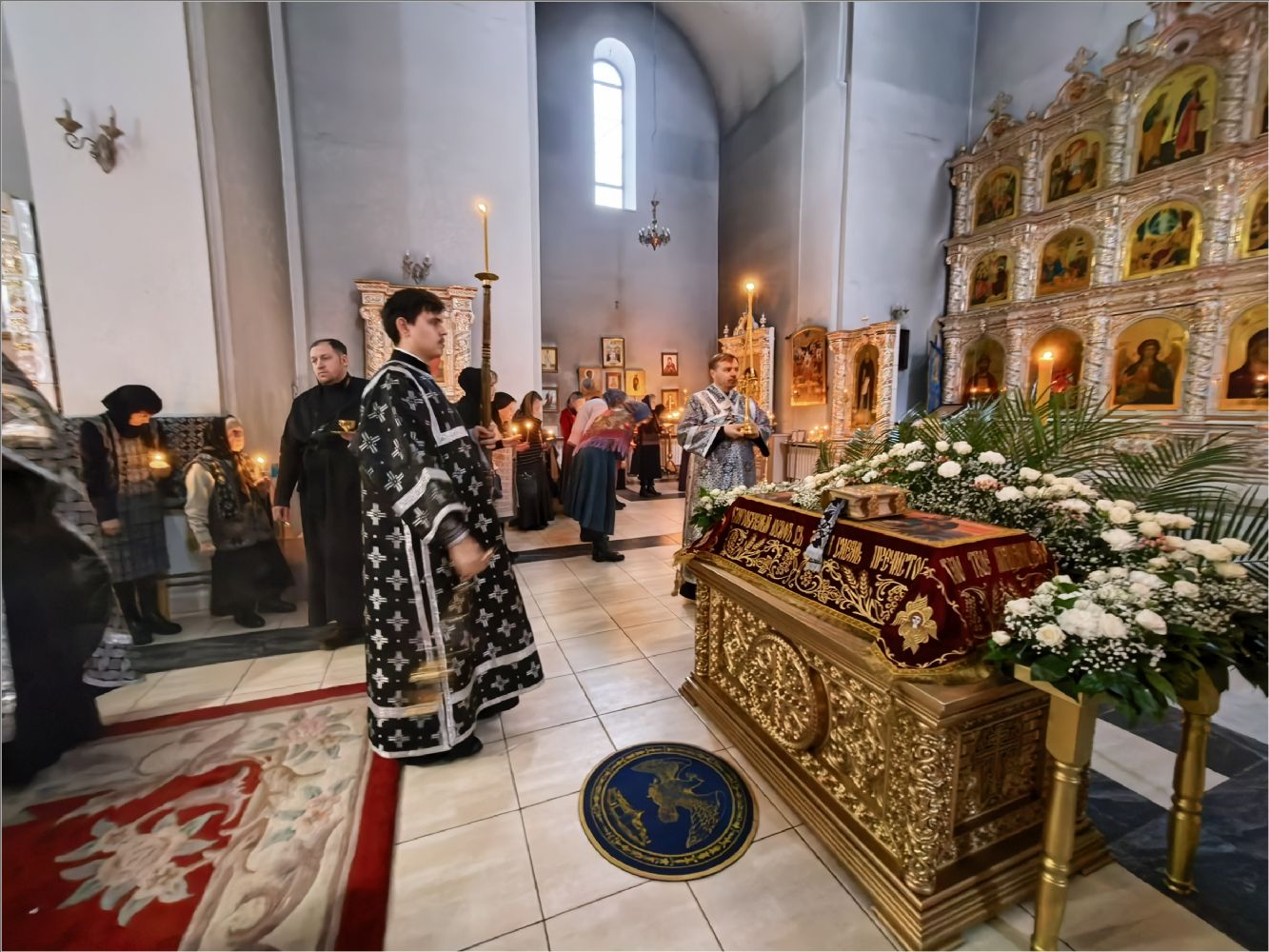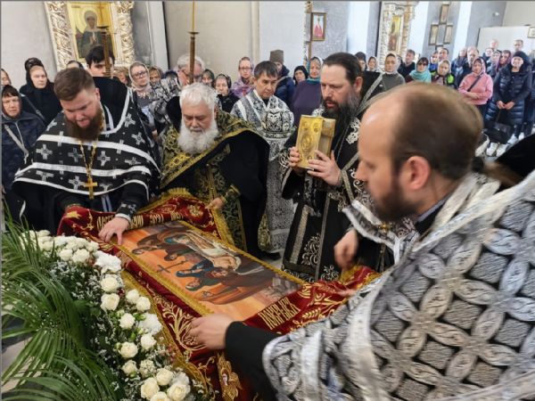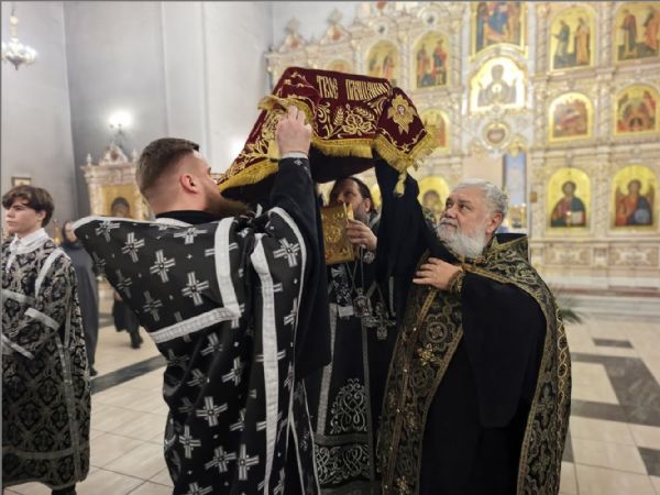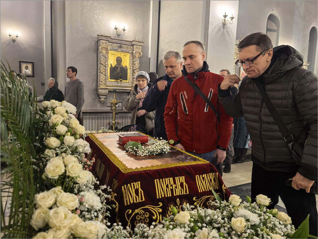 В завершение духовенство и молящиеся совершили молитвенное поклонение перед Плащаницей.
