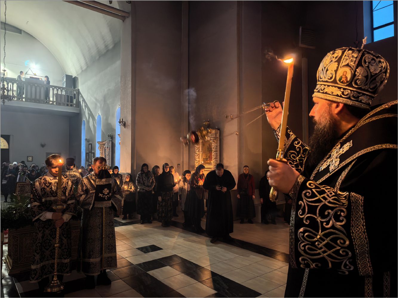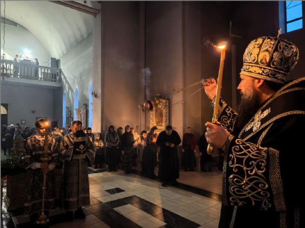 По завершении вечерни Великого Пятка архипастырь обратился к собравшимся в храме: