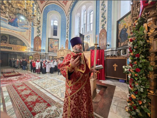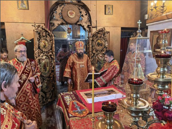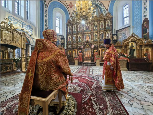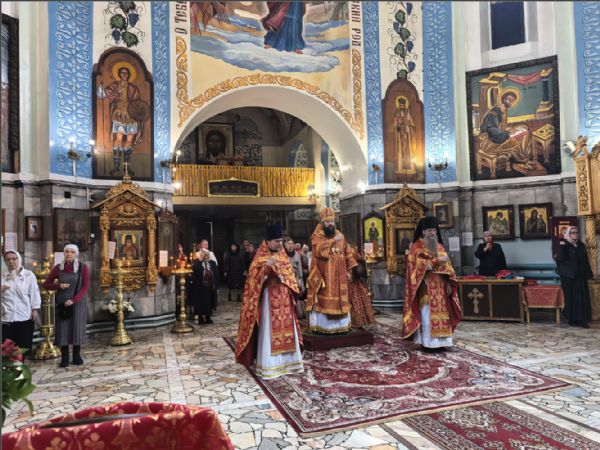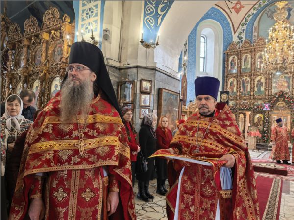 Богослужебные песнопения исполнил архиерейский хор под управлением Натальи Гладышевой. После сугубой ектении была вознесена молитвы о Святой Руси. По запричастном стихе проповедь произнёс иерей Георгий Опарин.