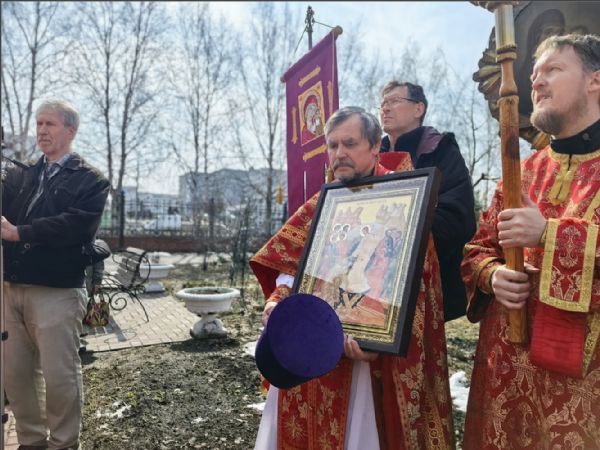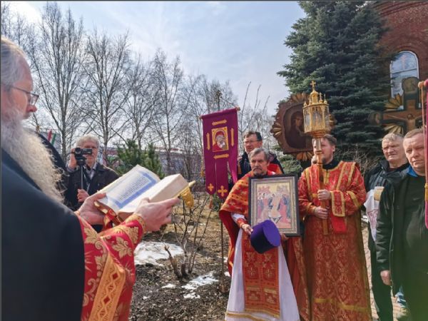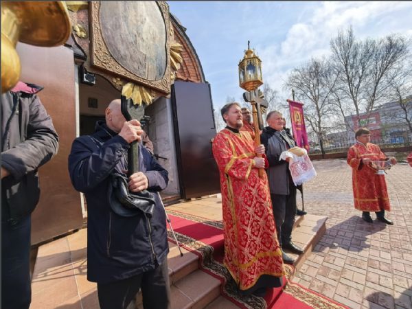 После отпуста Литургии был совершен пасхальный крестный ход.