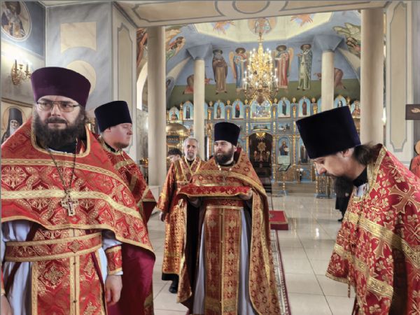 Богослужебные песнопения исполнил архиерейский хор под управлением Натальи Гладышевой. После сугубой ектении была вознесена молитвы о Святой Руси. По запричастном стихе проповедь произнёс иерей Даниил Кривов.
