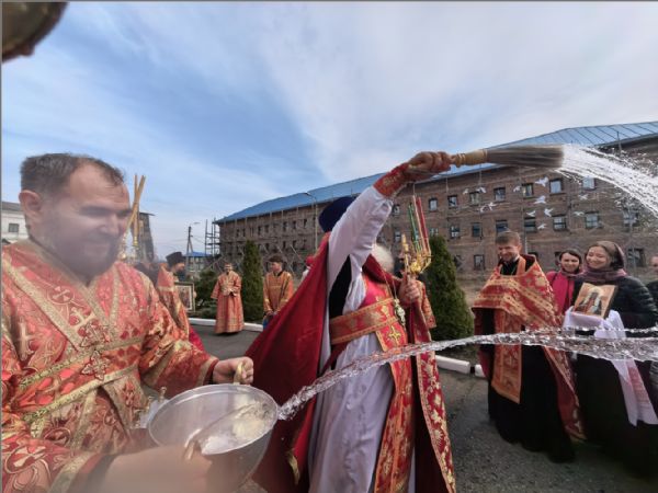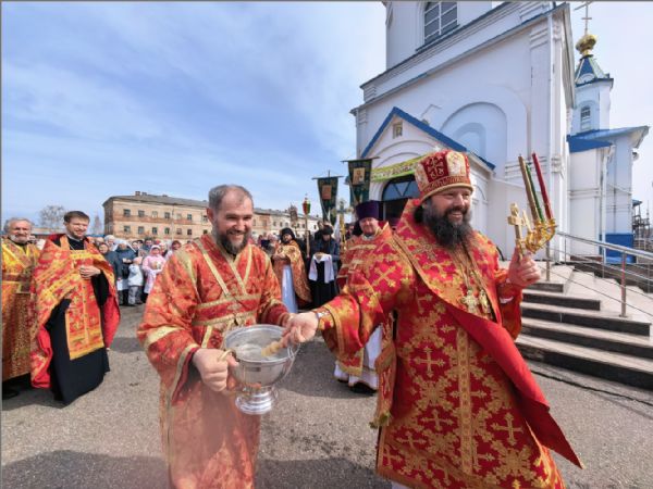 После отпуста Литургии был совершен пасхальный крестный ход.