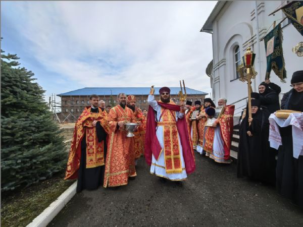 Архипастырю сослужили благочинный Елабужского округа иеромонах Кирилл (Забавнов), благочинный Закамского округа протоиерей Андрей Дубровин, настоятель храма преподобного Сергия Радонежского города Агрыза протоиерей Андрей Ехлаков, настоятель храма преподобного Серафима Саровского города Набережные Челны иерей Сергий Иноземцев, клирики монастыря иерей Даниил Кривов, иерей Илья Павлов, иерей Артемий Танаев. Диаконский чин возглавил протодиакон Дмитрий Половников.