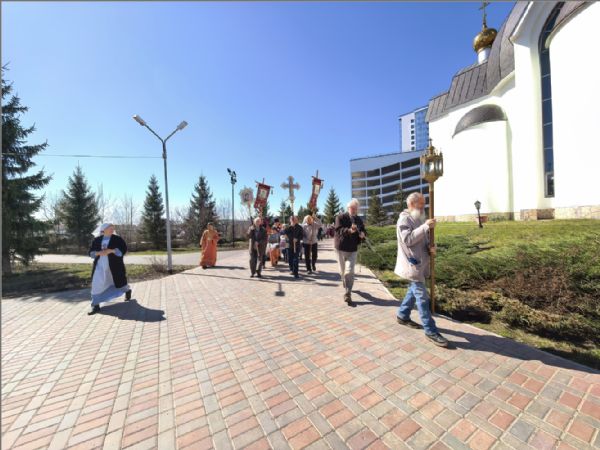 После отпуста Литургии был совершен пасхальный крестный ход.
