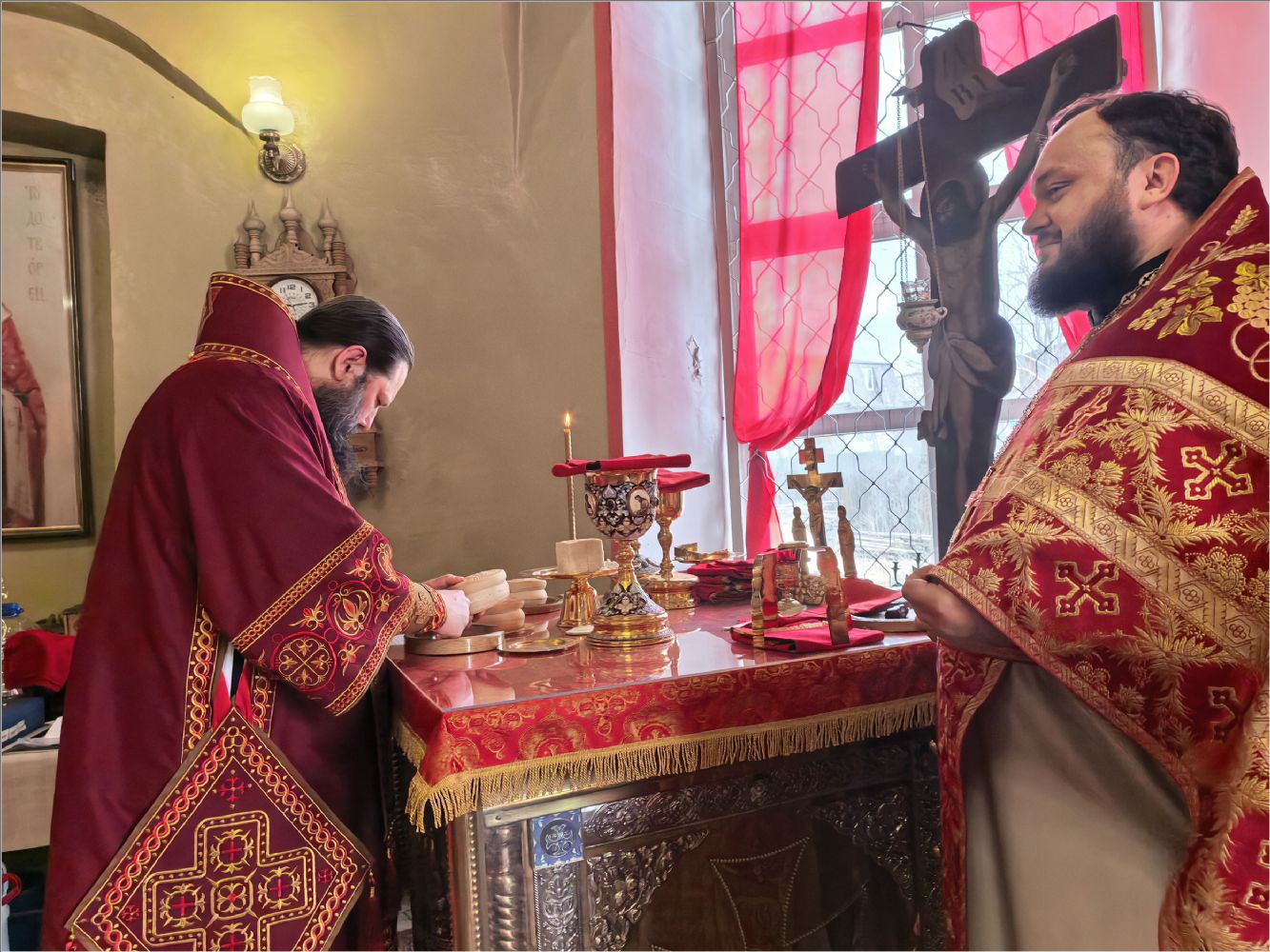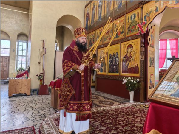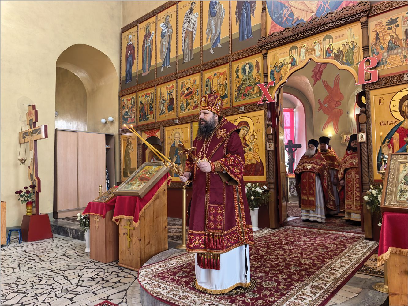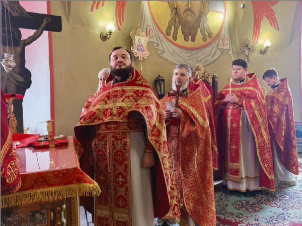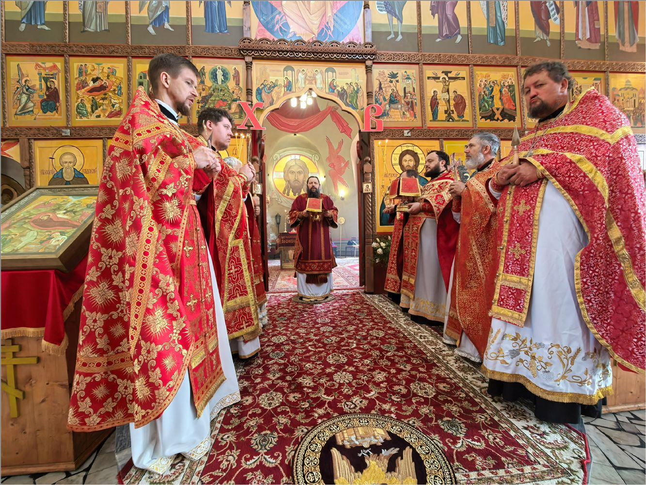 После сугубой ектении была вознесена молитва о Святой Руси. С проповедью по запричастном стихе к верующим обратился иеромонах Кирилл (Забавнов).