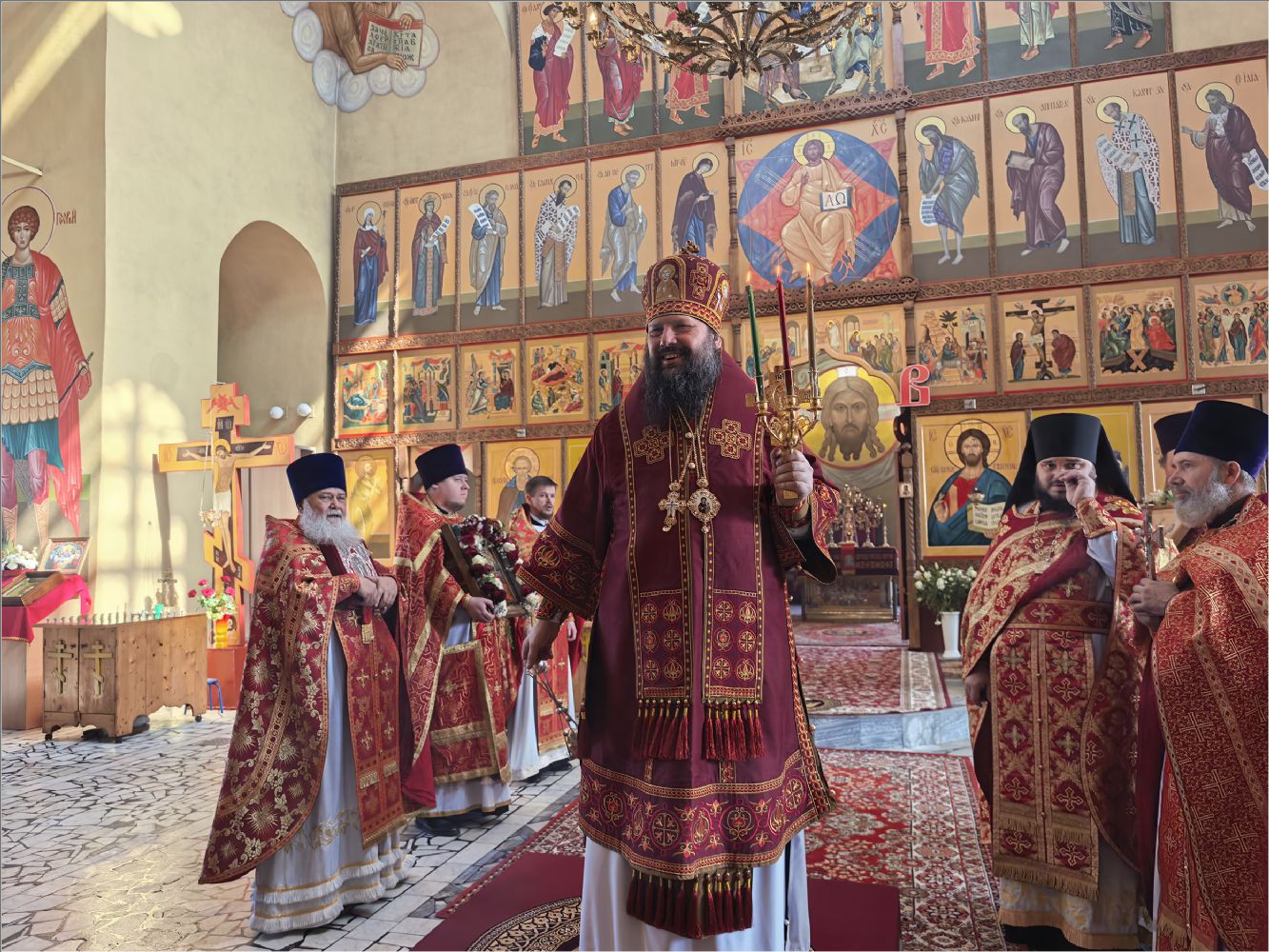 Архипастырю сослужили благочинный Елабужского церковного округа иеромонах Кирилл (Забавнов), благочинный Закамского округа протоиерей Андрей Дубровин, настоятель Богоявленского храма города Менделеевска иерей Вячеслав Ильин, настоятель храма святых первоверховных апостолов Петра и Павла в селе Бехтерево Елабужскго района иерей Владимир Охотин, клирик Елабужского женского монастыря иерей Илья Павлов и протодиакон Дмитрий Половников. Песнопения исполнил приходской хор под управлением Людмилы Шайметовой.