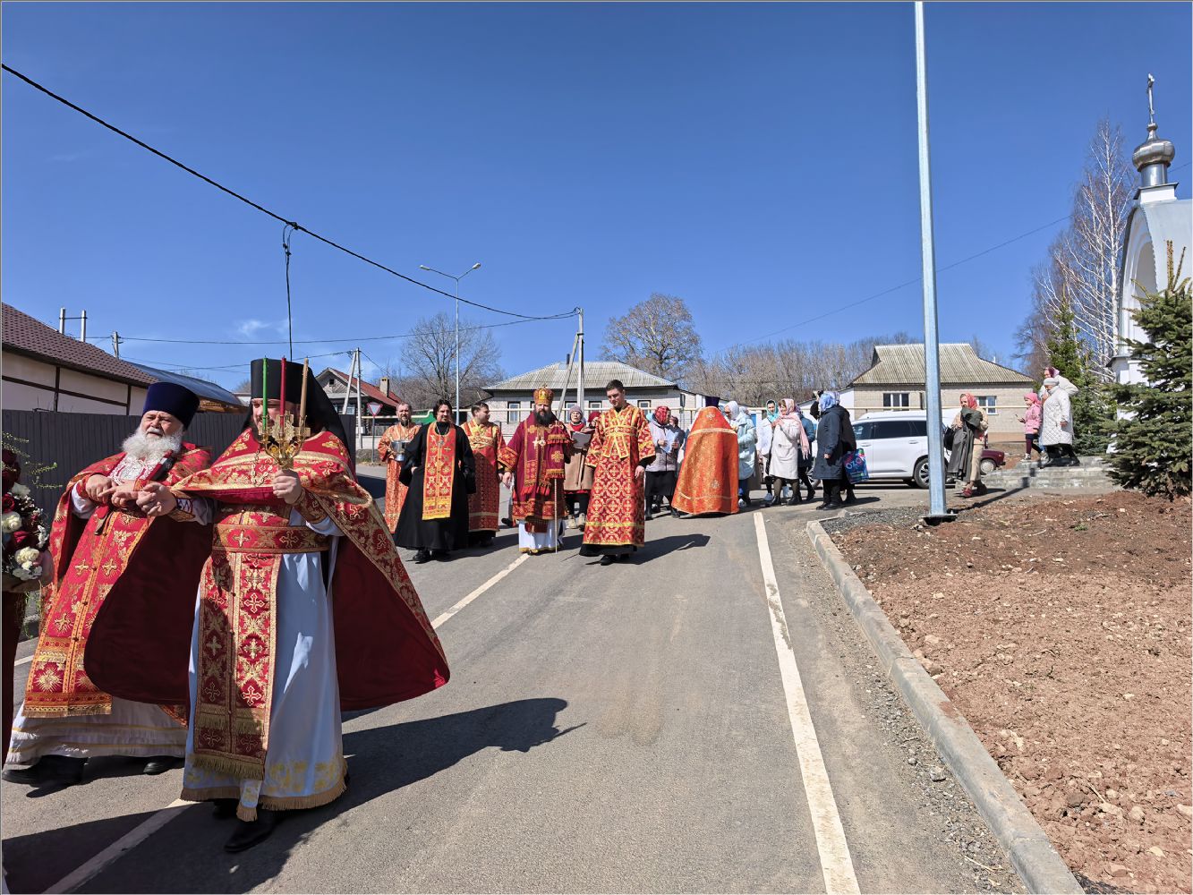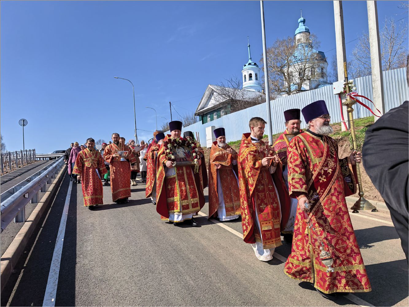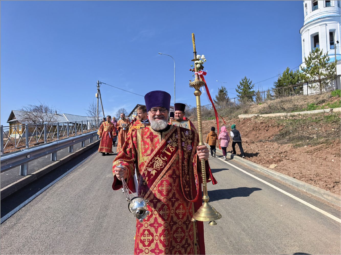 После отпуста Литургии был совершен крестный ход на источник с пением Пасхального канона. На источнике владыку встретил глава Менделеевского района Роберт Искандаров. Глава поздравил епископа Гавриила с праздником.