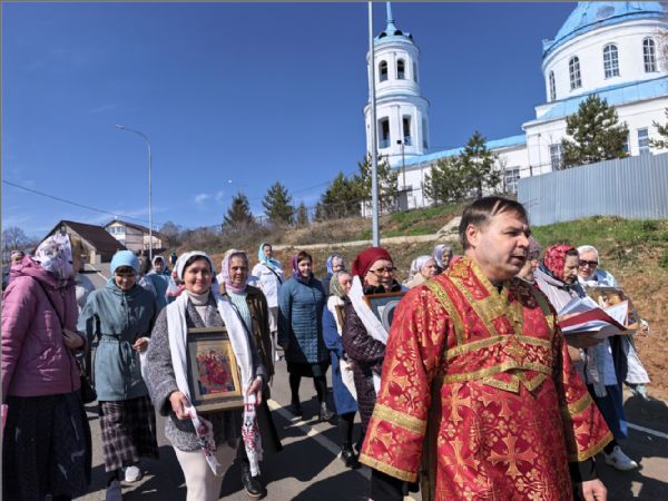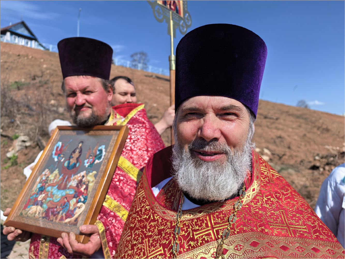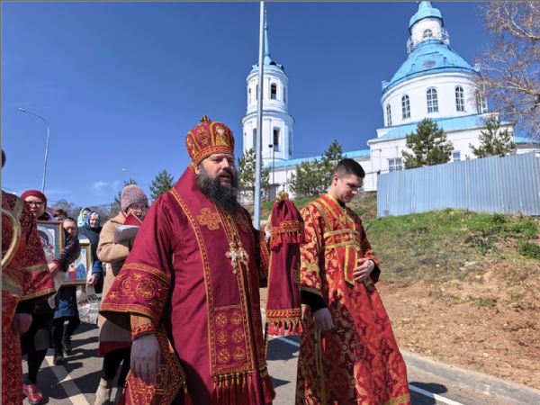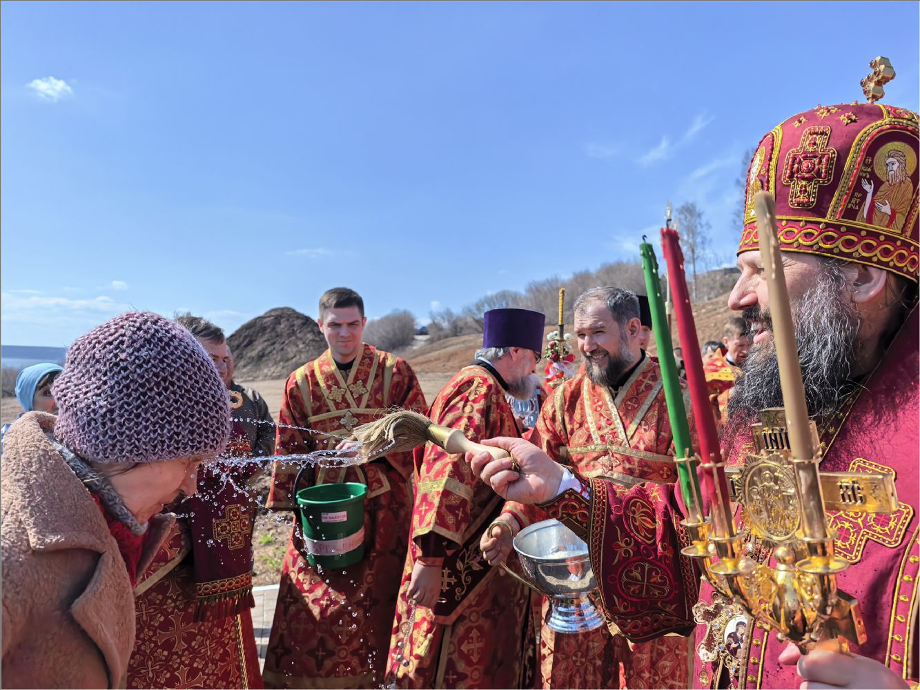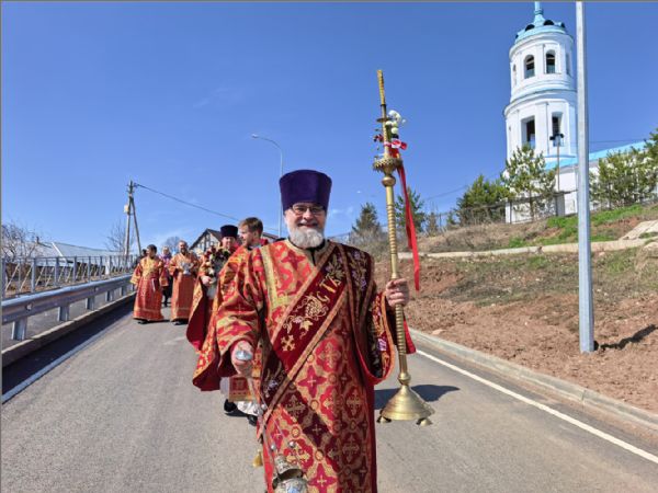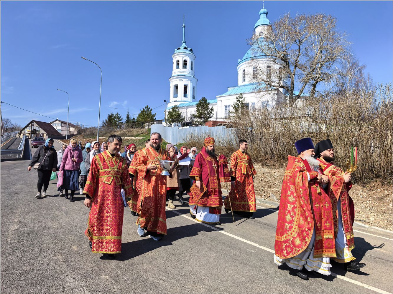 После отпуста Литургии был совершен крестный ход на источник с пением Пасхального канона. На источнике владыку встретил глава Менделеевского района Роберт Искандаров. Глава поздравил епископа Гавриила с праздником.
