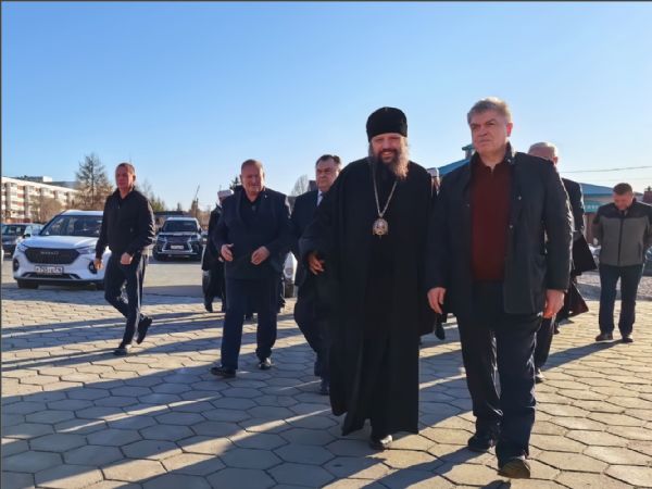 Перед входом на территорию прихода гостей встретил епископ Набережночелнинский и Елабужский Гавриил. Он тепло поприветствовал гостей Пасхальной трапезы.