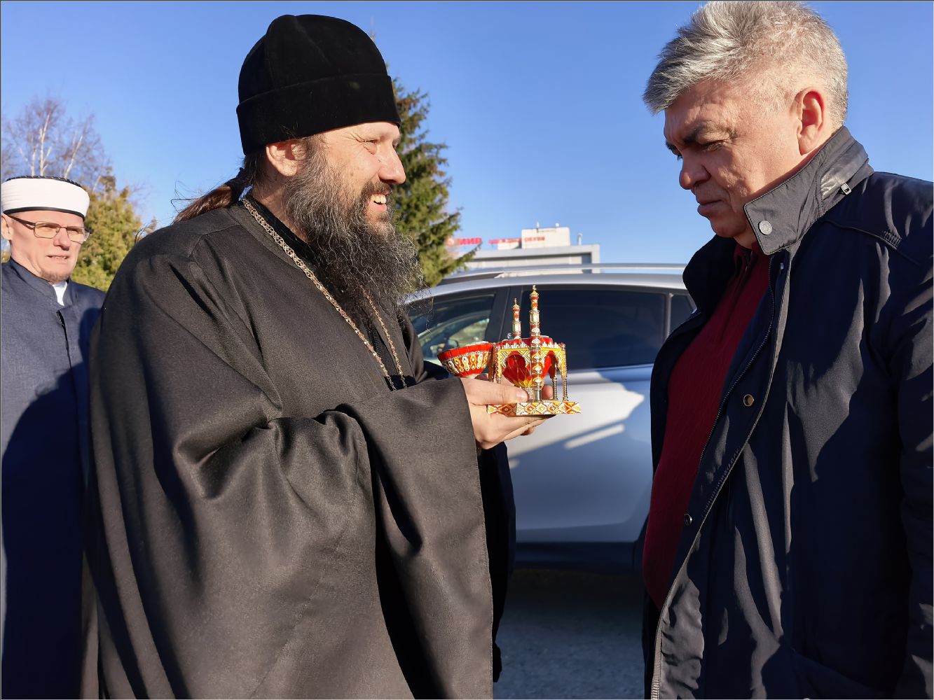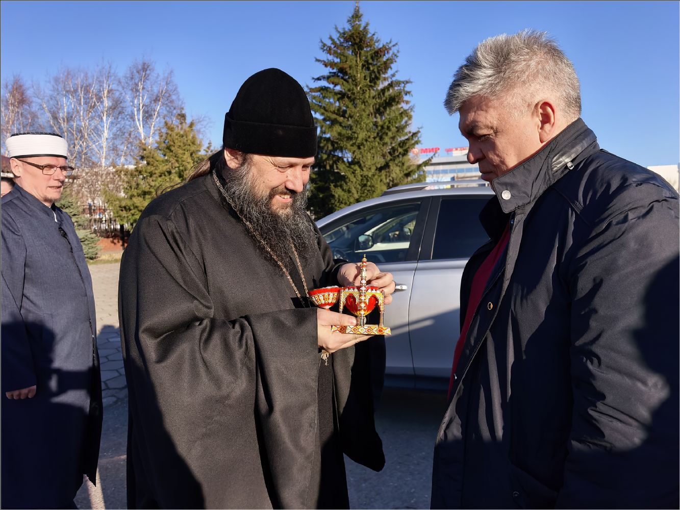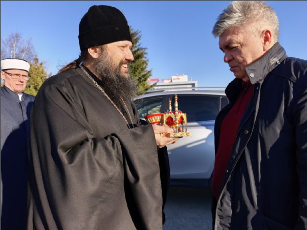 «Сердечно приветствую вас и выражаю глубокое уважение всем православным братьям и сёстрам. Мы живём в многонациональном и многоконфессиональном городе и республике, и не можем пройти мимо этого важного и знаменательного события в жизни наших православных друзей. Сегодня мы собрались здесь, чтобы ещё раз выразить взаимное уважение и почтение.