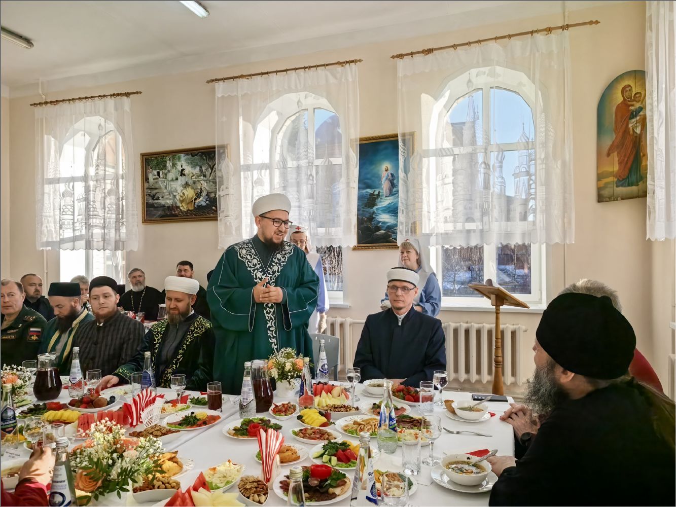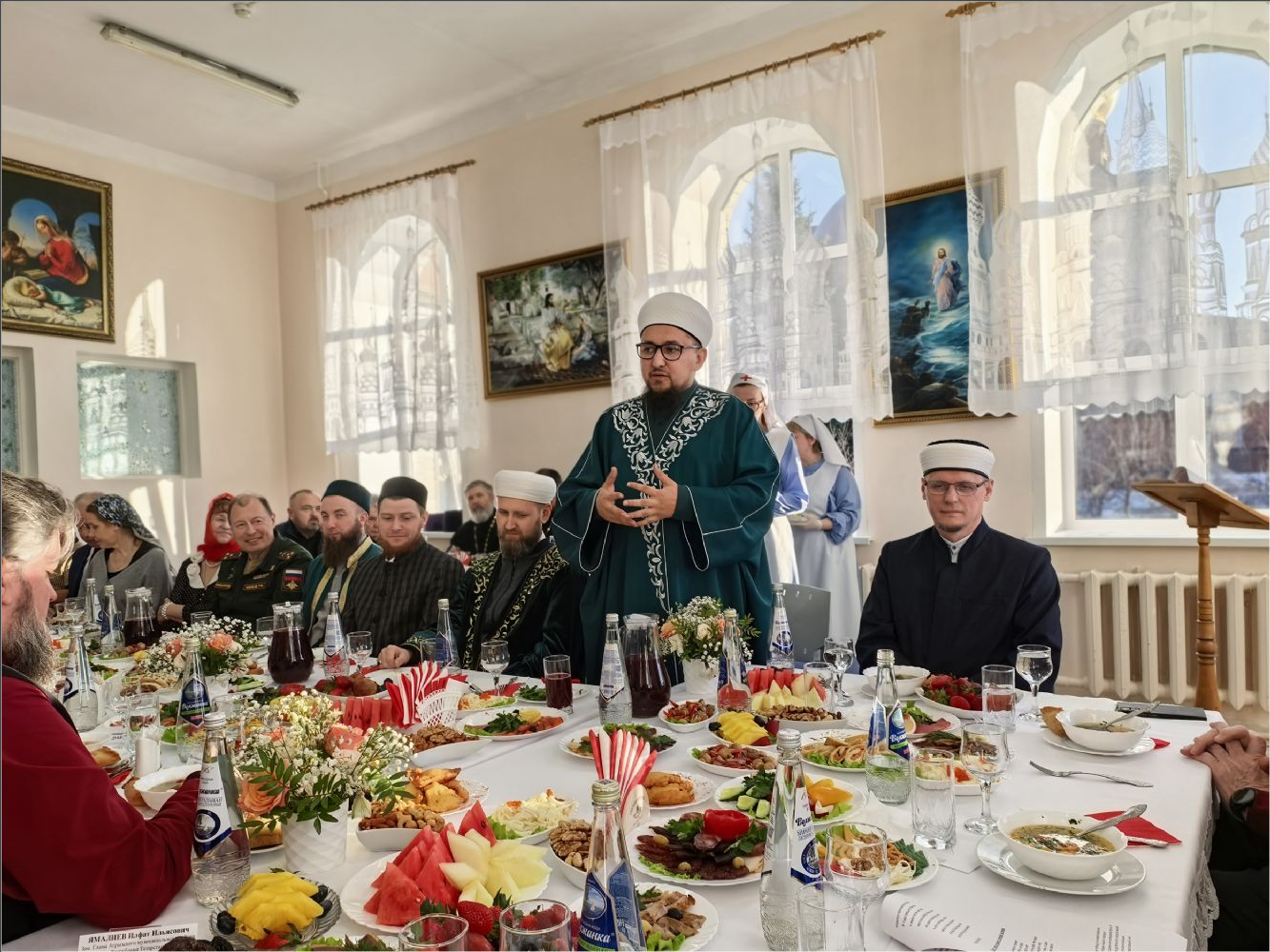 «Прежде всего, позвольте от имени Муфтия Республики Татарстан Камиля хазрата Самигуллина сердечно поприветствовать дорогого владыку и всех собравшихся. Муфтий шлёт вам свой пламенный салям и выражает глубокую благодарность за возможность совместного участия в этом прекрасном мероприятии.